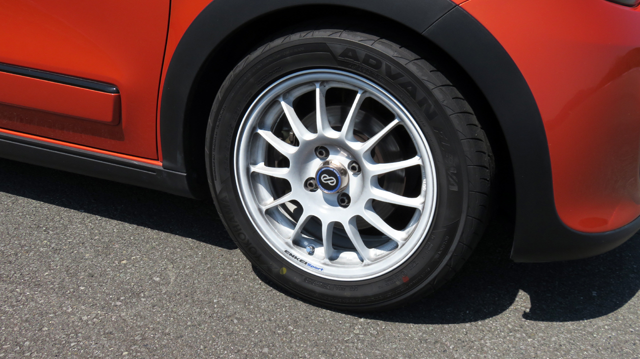 変更して前後同サイズになったエンケイRC-T5は15インチの6.5Jでインセットが45㎜