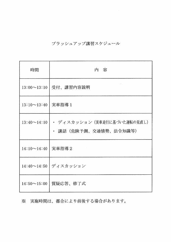 ブラッシュアップ講習は2時間のカリキュラム