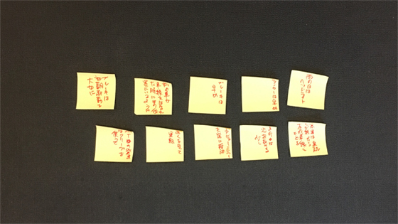 「運転している時に意識していることを書いてみませんか」と付箋とペンを差し出す
