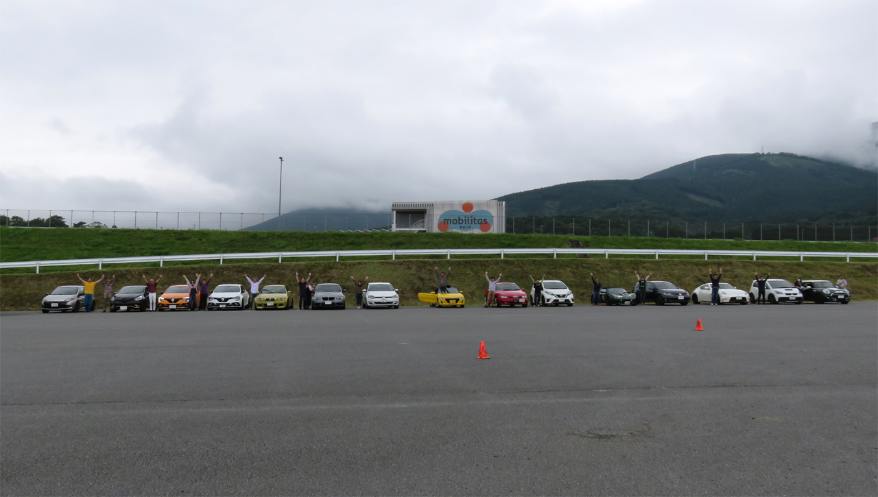 お昼ごはんが終わって全員の集合写真を撮ろうとしたら、横一列だと人間とクルマが小さくなってしまった。それではというので、急遽ビデオ撮影に変更した結果がこれ。