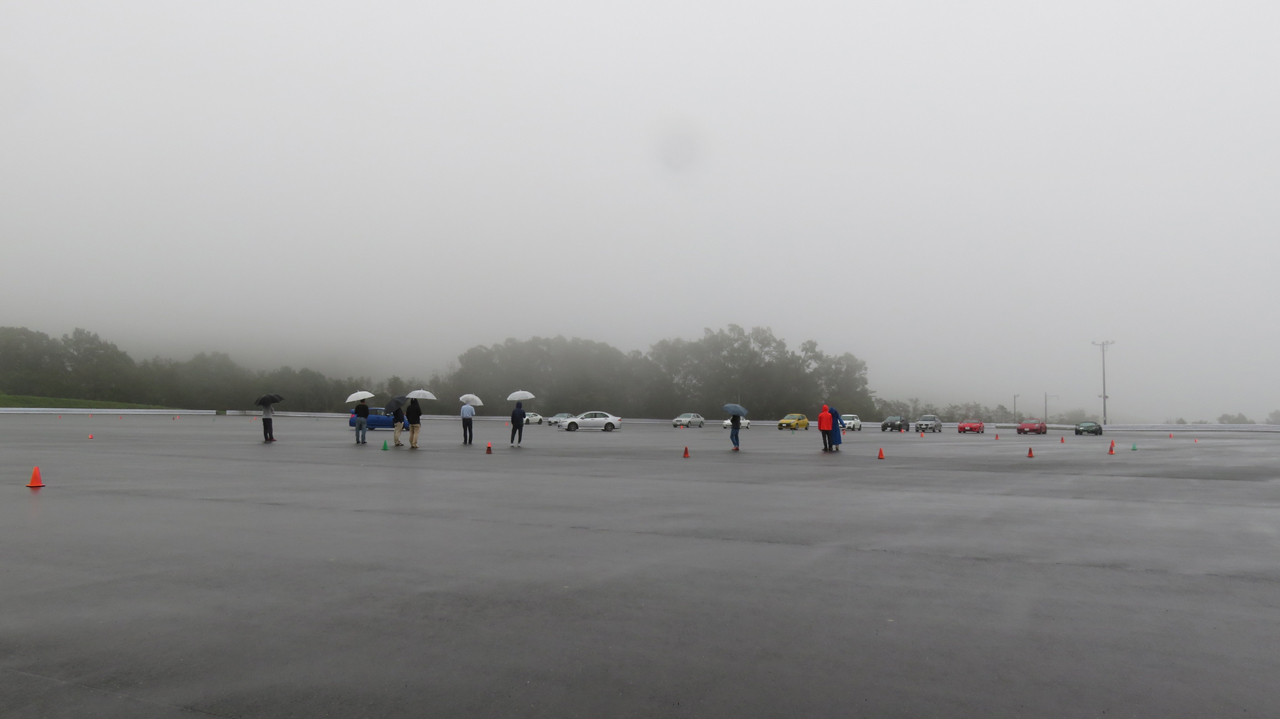 ユイレーシングスクールが最初に富士スピードウエイの駐車場でドライビングスクールを始めたのだけど、その後周囲にガードレールができたり教室が建ったりして、四輪/二輪のインポーターやカーショップも使い始めて今や大賑わい。特にP2駐車場は今年の空きはなし。