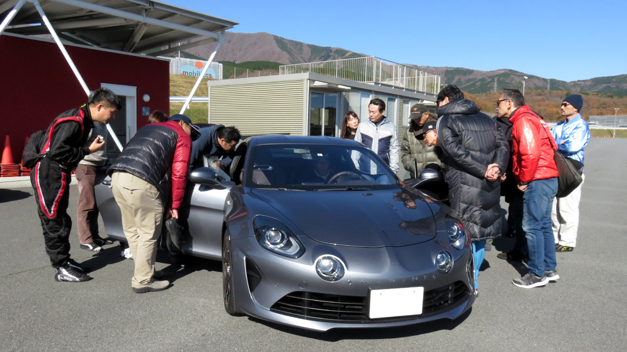 参加者全員が笑顔で試乗を終えました。アルピーヌA110ピュアとリネージを貸してくれたアルピーヌ・ジャポンに改めて感謝いたします。