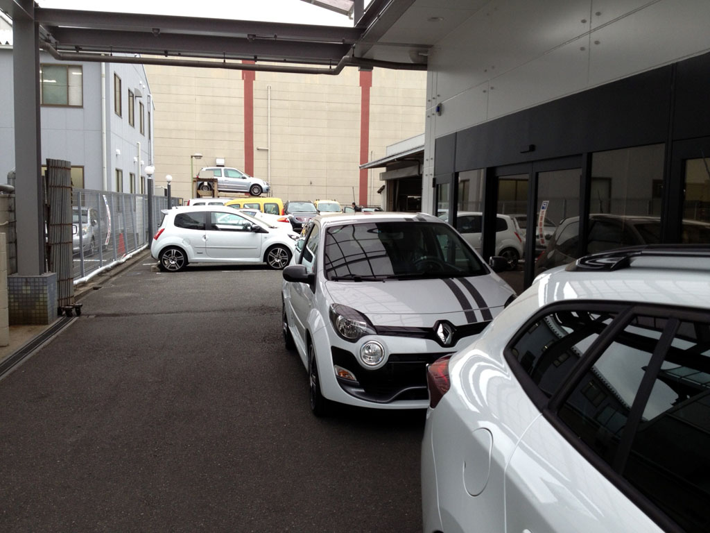 外には納車待ちのトゥィンゴ ゴルディーニ ルノー・スポールが1台