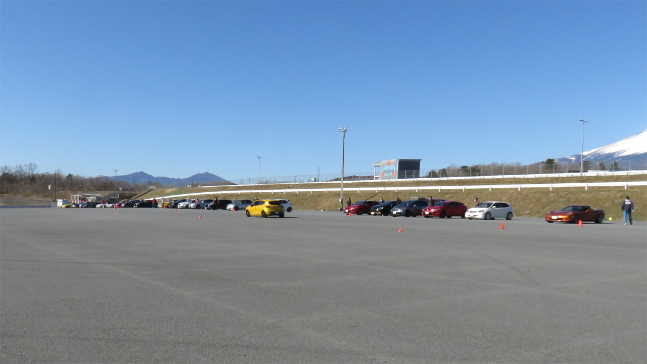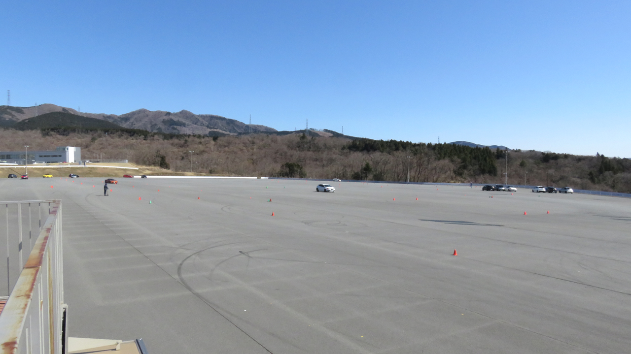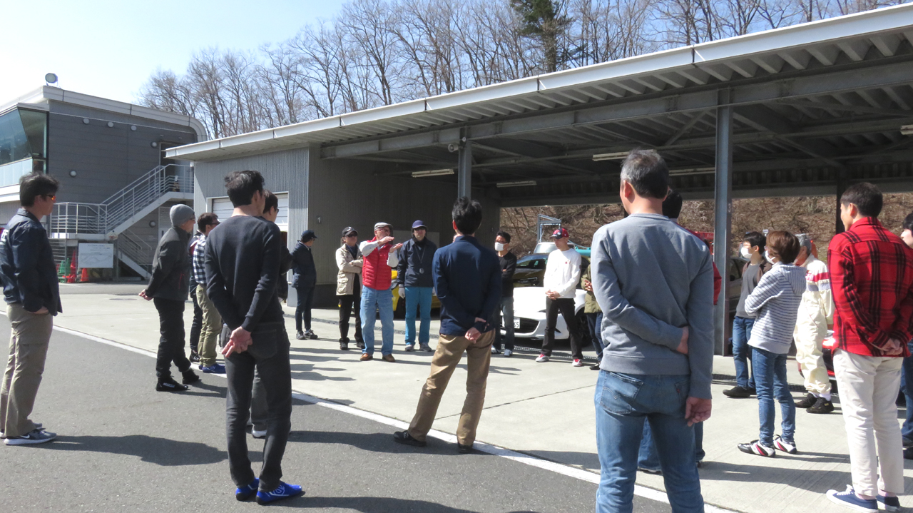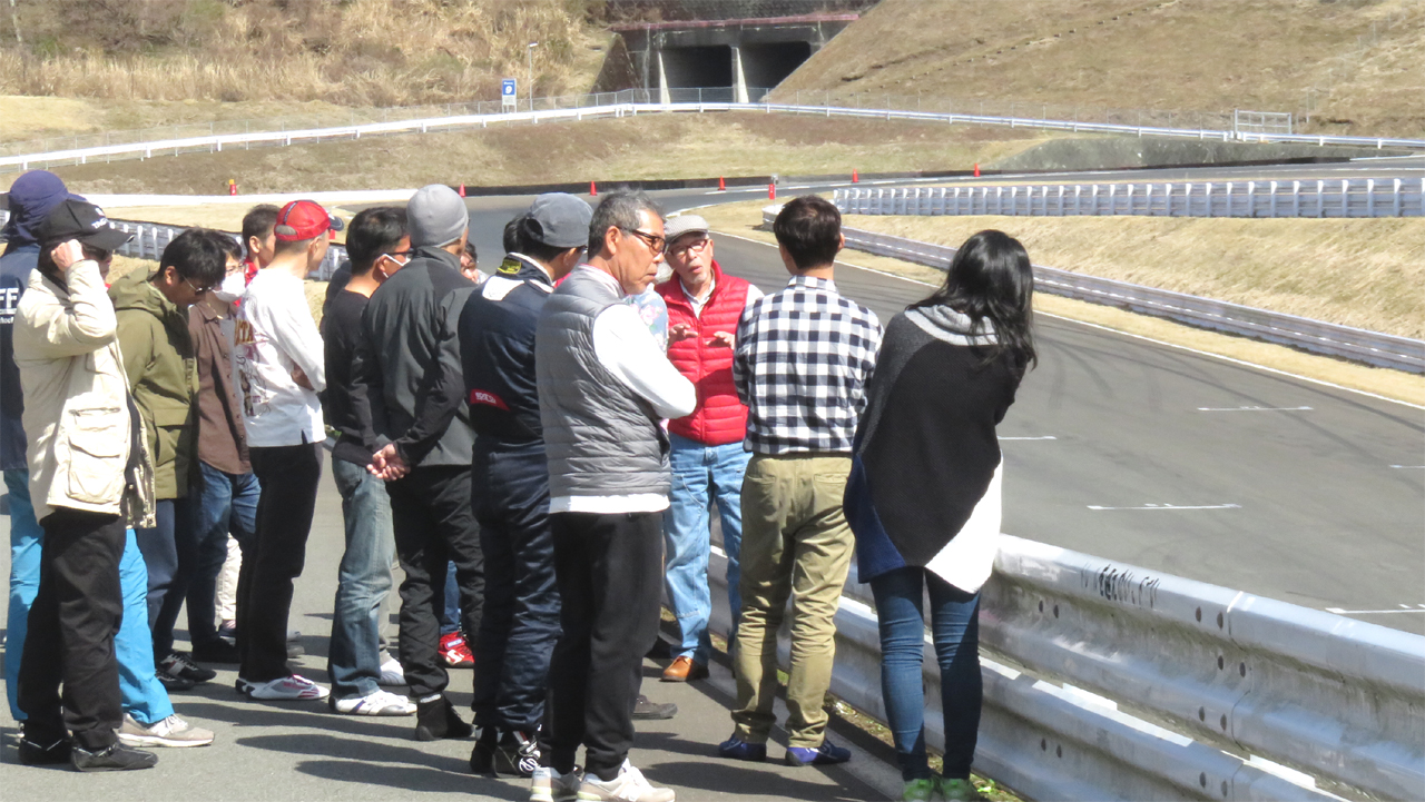 スラローム、ブレーキング、フィギュアエイト、オーバル走行で反復練習をしながら、ミーティングでドライビングポジションの話とか視線の持って行き方の説明を行い、クルマと一体になってクルマが動きやすい状況を作り出せるようになります。