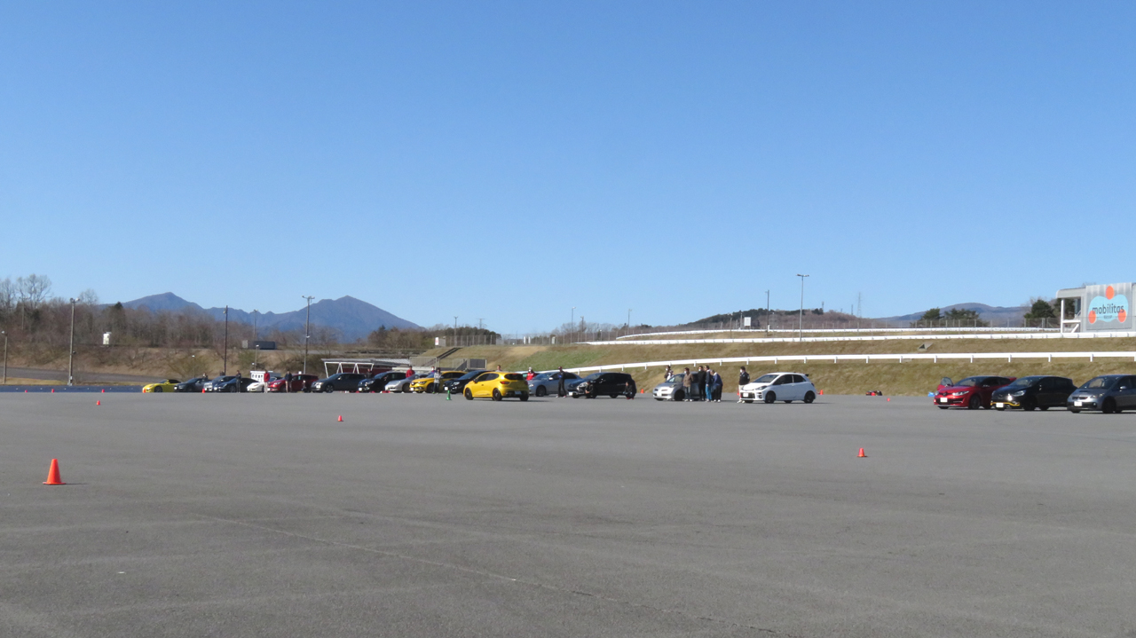 駐車場で行うYRSツーデースクール1日目は8時に集合