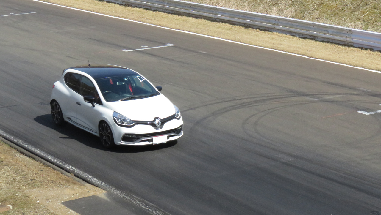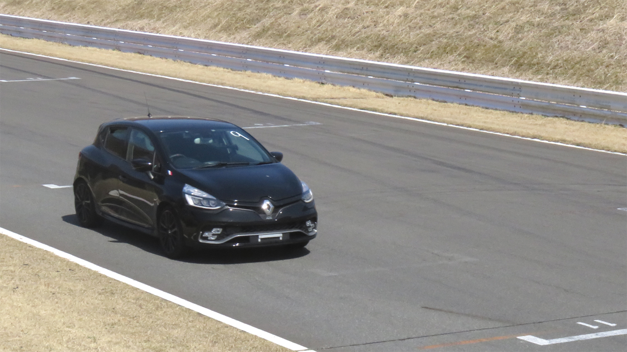 スタッフが同乗走行中のHのメガーヌRSが最終コーナーを立ち上がる