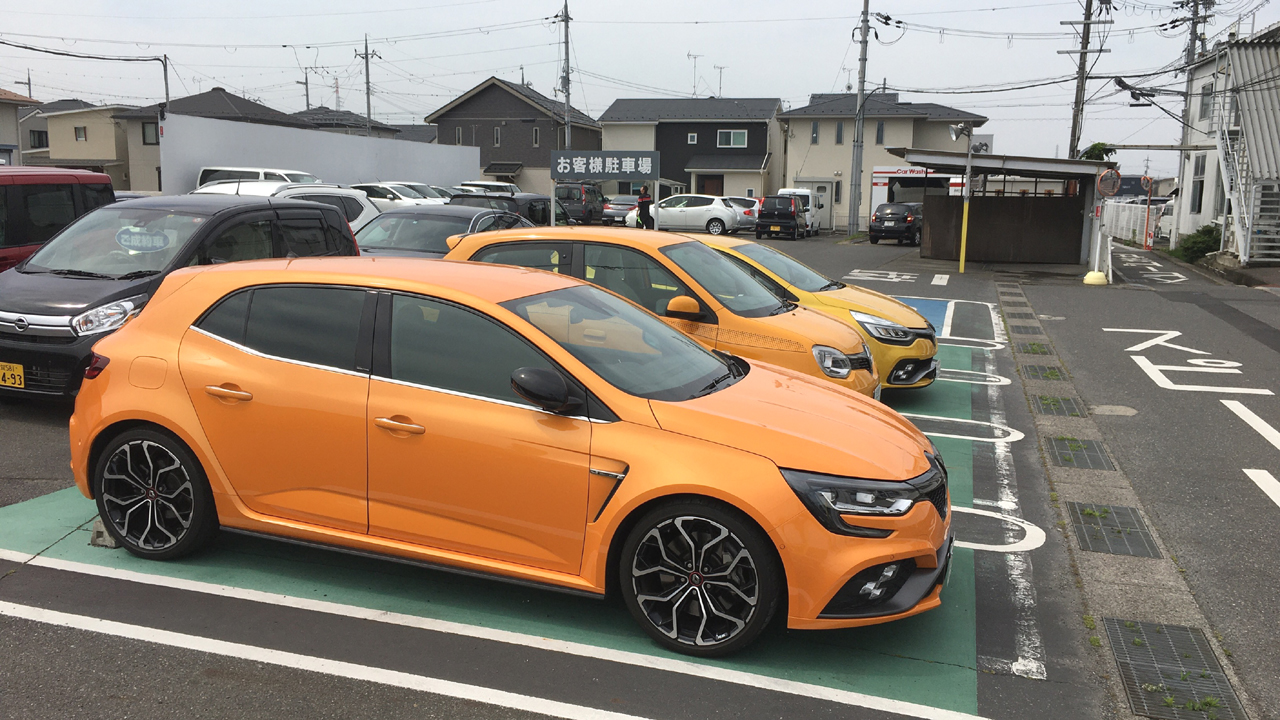 ルノー栗東の駐車場に裏から入ったら橙色2台が並んでた