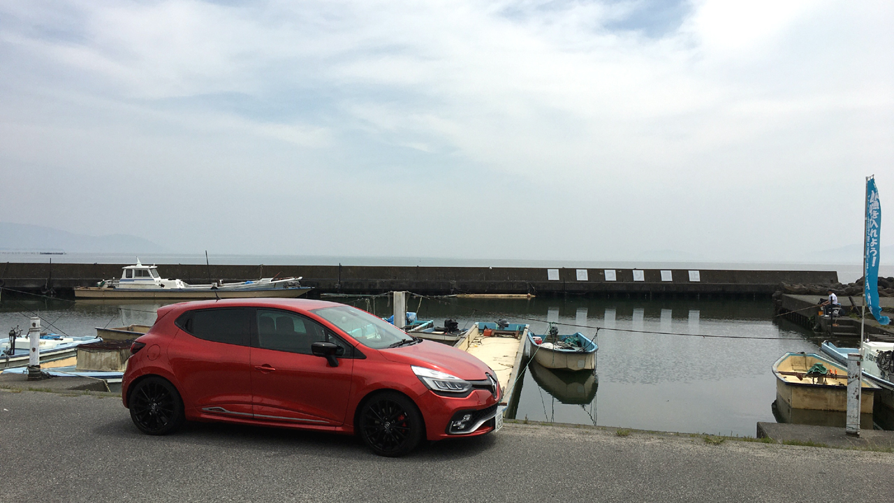 和邇漁港にたたずむ赤いルーテシアRSトロフィー