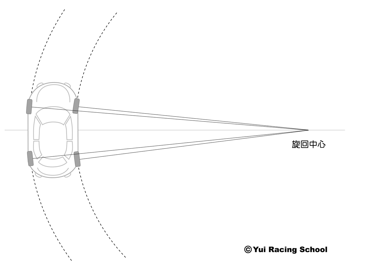 端的に言えば、ユイレーシングスクールが目指しているのは、前輪操舵車に乗っていても4輪操舵車のようなコーナリングができるようになることだ。