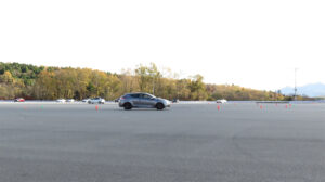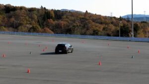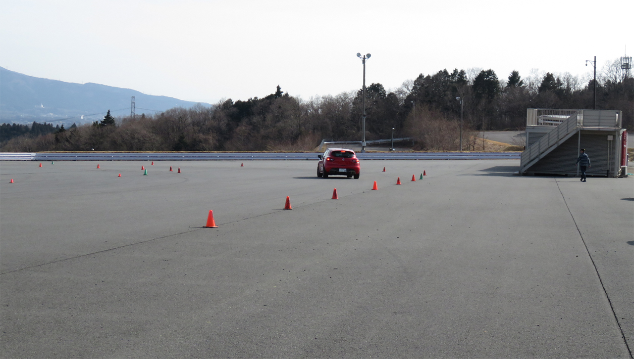 アンダーステアを出さなければパイロンタッチはしないものだ。通常は前輪に舵角が与えられてまず前輪が円運動を始め、ホールベース分遅れて後輪の円運動が始まる。この時、直進運動から旋回運動に移るのが苦手なクルマのことを考えて、ターンインの位置を手前にしてターンインから少しずつ舵角を連続して増やしていけば問題はないのだけど、ペースを上げるとついエイヤッとステアリングをバキ切りする癖がある人がいる。