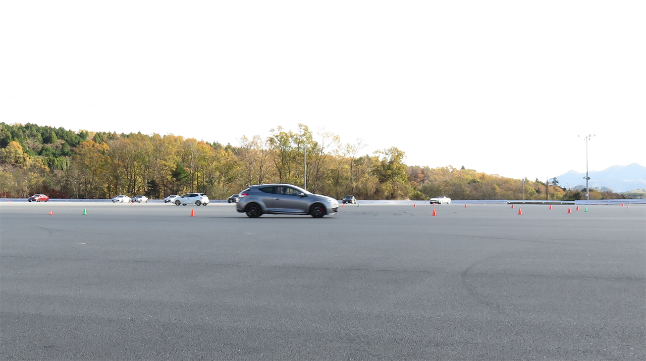 だから、前輪操舵のクルマに乗っていても、内輪差がほとんど生じないコーナリングをすることが理想だし可能だ。つまり、それには前輪に生じるスリップアングルと同等のスリップアングルを後輪にも与えられるような操作が必要で、YRSオーバルスクールFSWではそのあたりのアドバイスを聴いてもらいながら練習する。ぜひ一度アンダーステアを出さない運転に挑戦してみてほしい。その前に、ご自身の操作がアンダーステアを出していないかどうか確認に来てみてはいかがだろう。