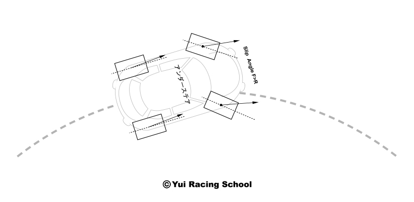 前輪のスリップアングル>後輪のスリップアングル