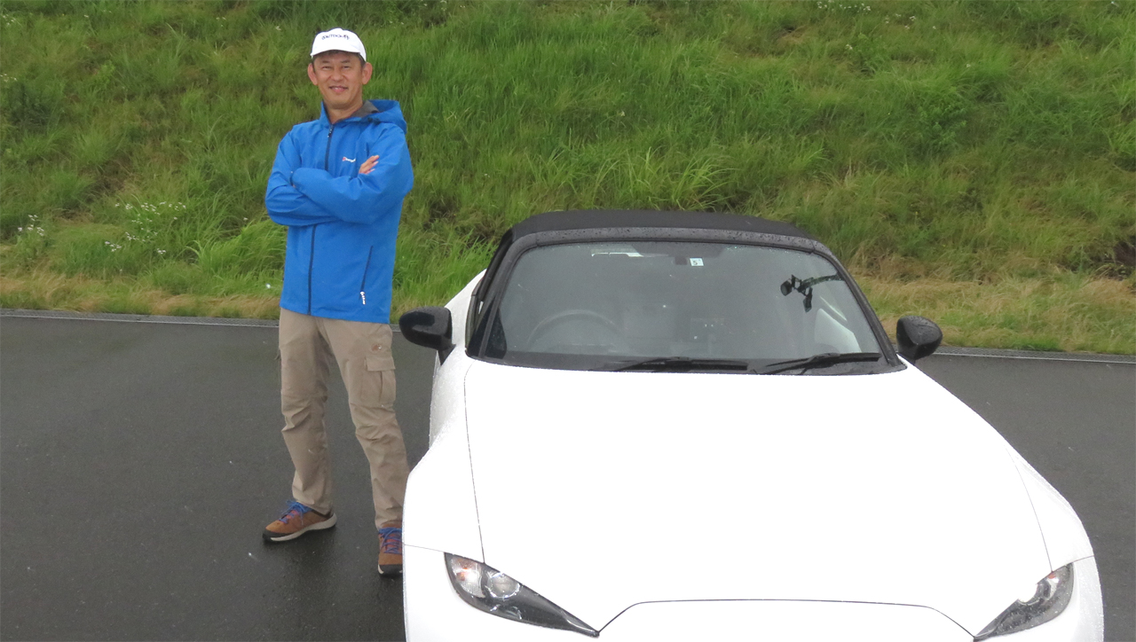 試乗した頃に雨が降ってきまして、急に激しく降られました。昨今ではゲリラ豪雨と表現した方が分かりやすいでしょうか、相当の雨量です。駐車場のため全域ほぼフラットなので1cmくらい雨が溜まっているような状態での試乗でした。この車には多くのレーシングドライバーやジャーナリストの方が乗ったでしょうが、おそらくこれだけの激しいレインコンディションで試乗したドライバーはいないと思いますので、大変貴重な経験になったと思います。