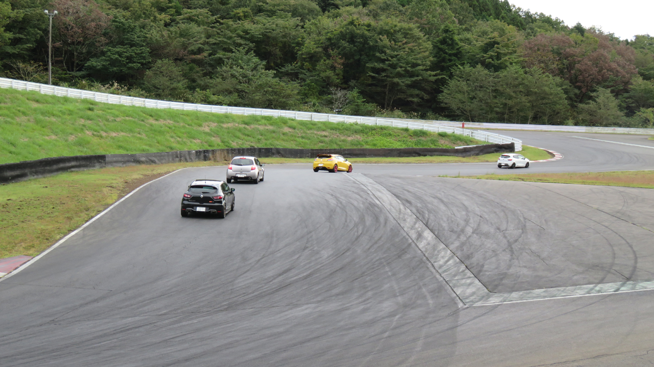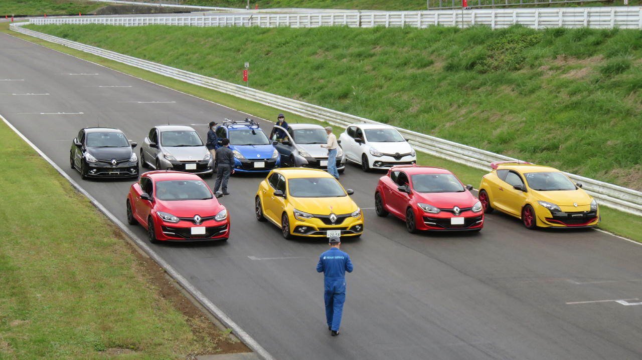 ルノー乗りの参加者とルノー乗りのスタッフがコース上に
