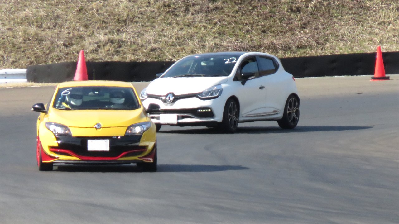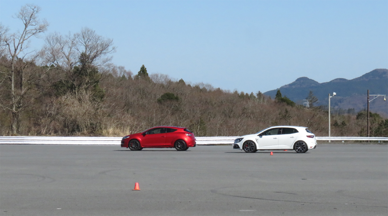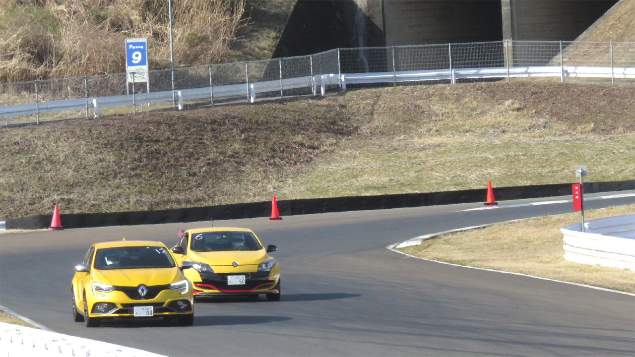 スクールカーとして最初に提供してくれたトゥインゴGTはスクール往復の2年半で3万8千キロを走りトゥインゴ ゴルディーニ ルノー・スポールにバトンタッチ。2年後にルーテシアⅣRSシャーシスポールに選手交代。その後ルーテシアⅣシャーシカップ、メガーヌⅣRS、ルーテシアⅣRSトロフィー、メガーヌⅣRSトロフィーと、ルノー・ジャポンは次々と運転することが楽しいクルマを貸してくれた。ユイレーシングスクールのインストラクターとしてだけではなく公私ともに望外の喜びを感じている。実際、それぞれのクルマをテーマにクルマ本来のあり方やクルマの操り方についてスクールに参加してくれた方に掘り下げて話すことができたし、それらのクルマを使って教育的動画を制作したり、ボクが目指しているクルマの楽しみを広く伝えるにはうってつけの相棒達だった。