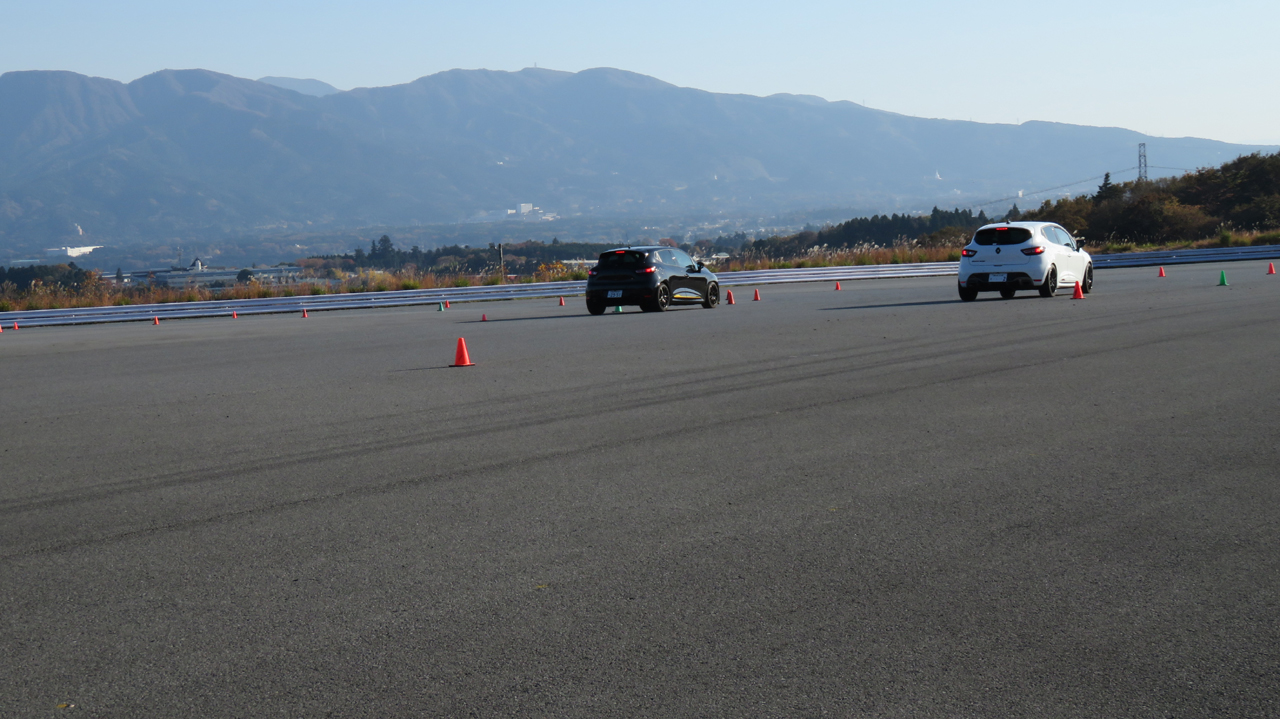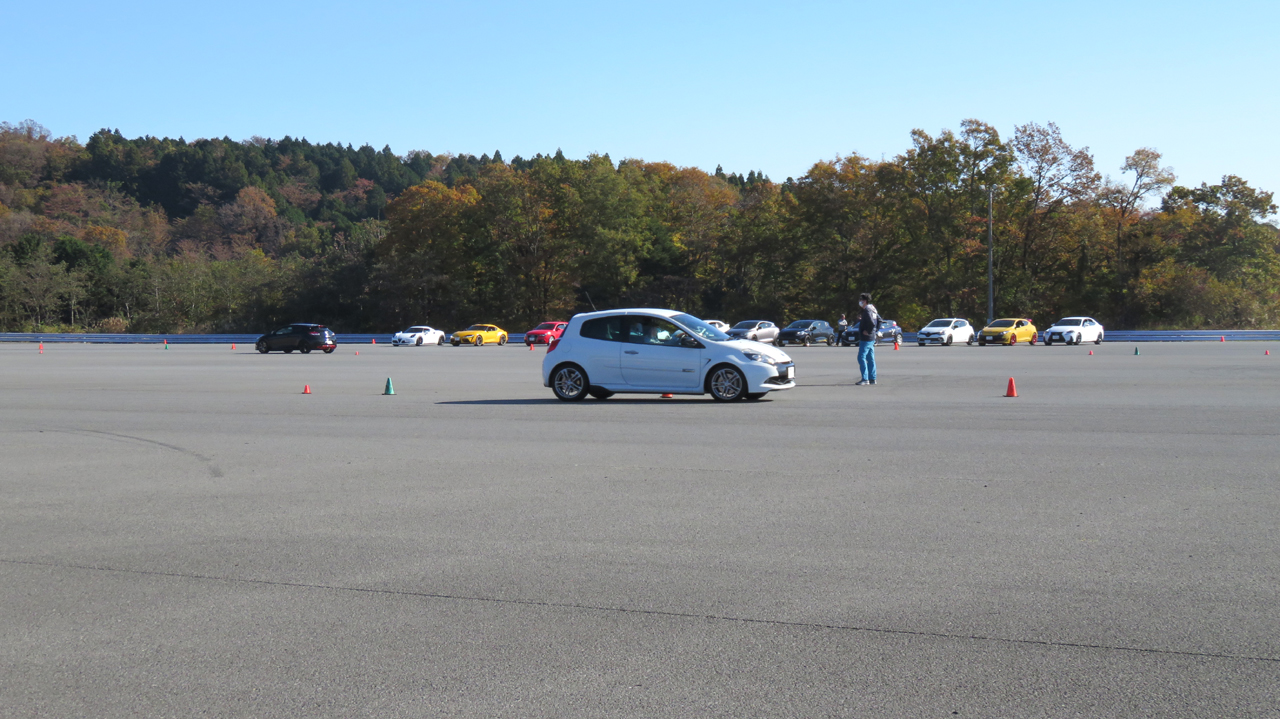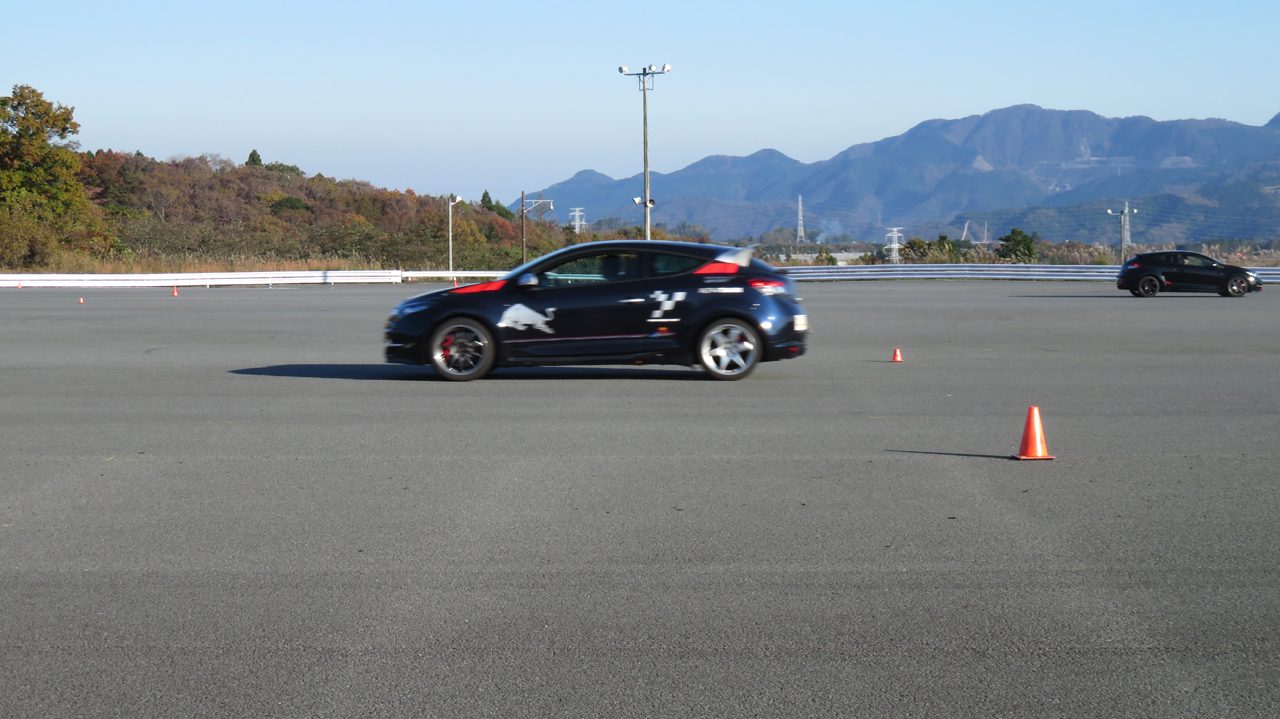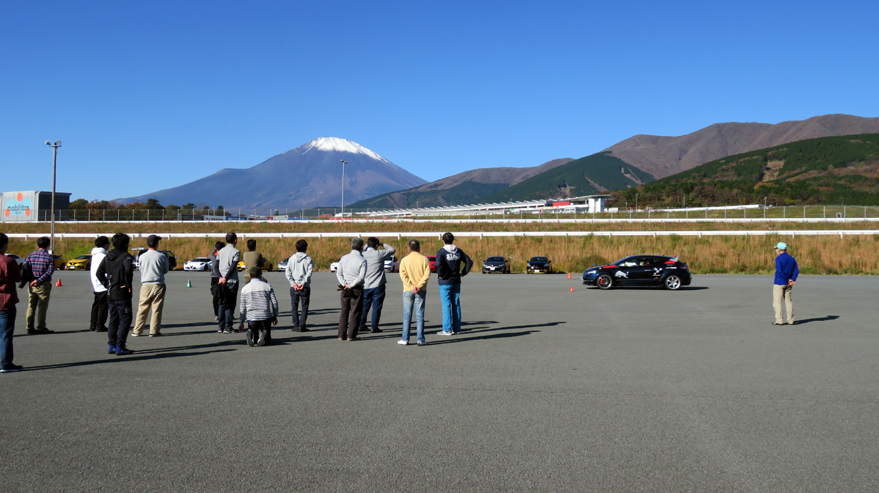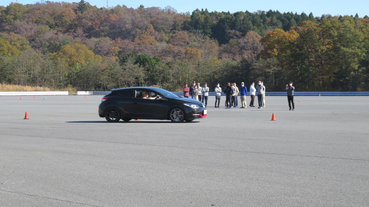 座学が終わると最初にイーブンスロットルでコーナリングするクルマを観察してもらう