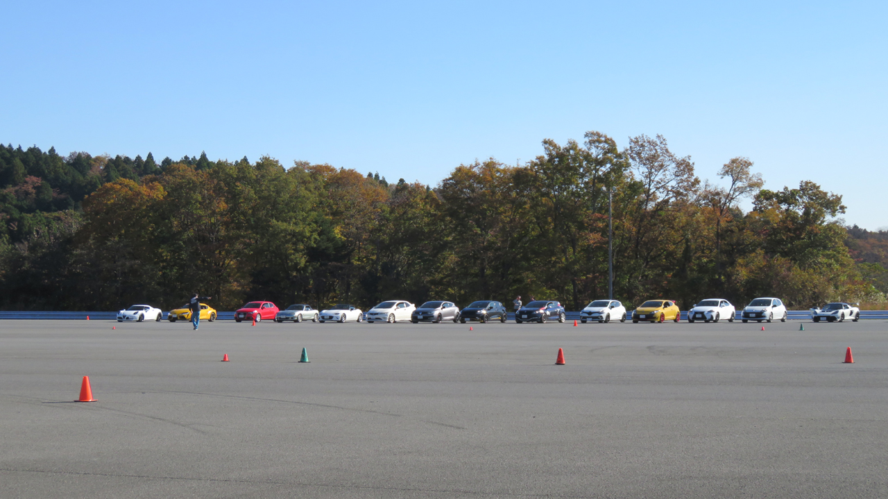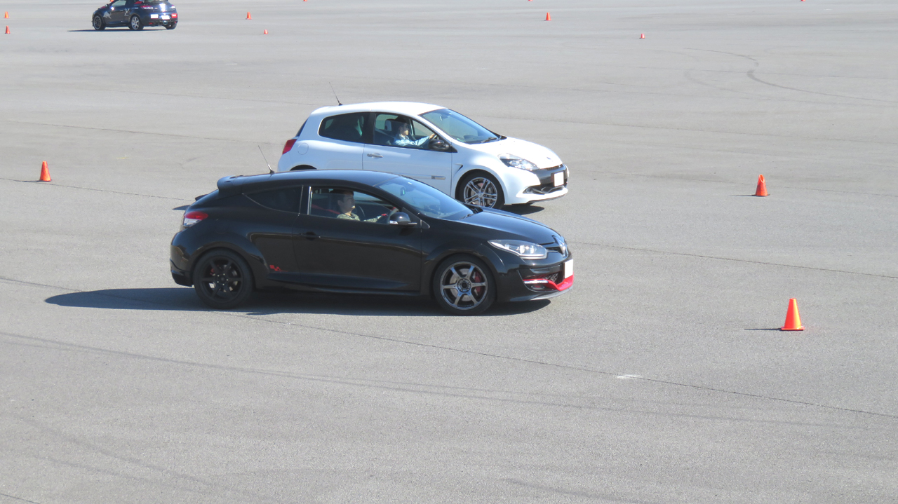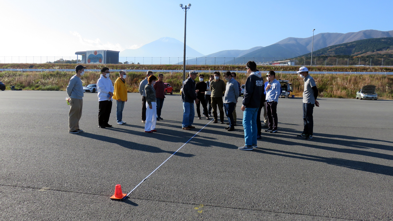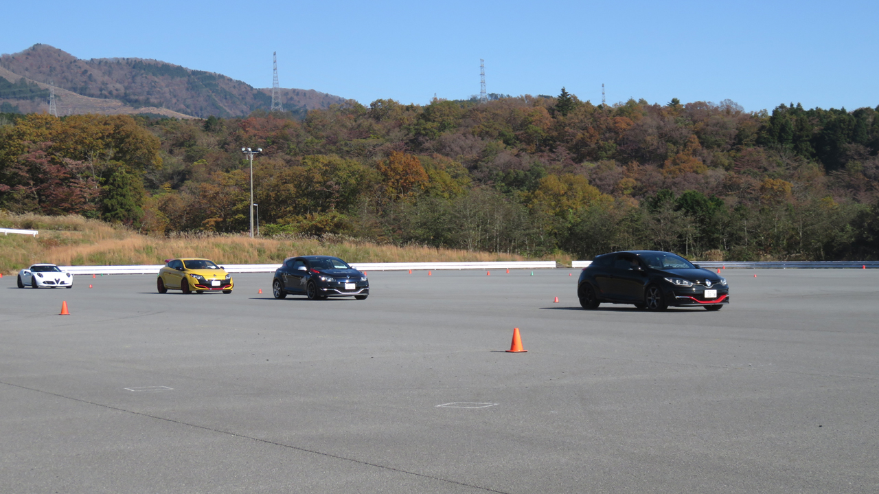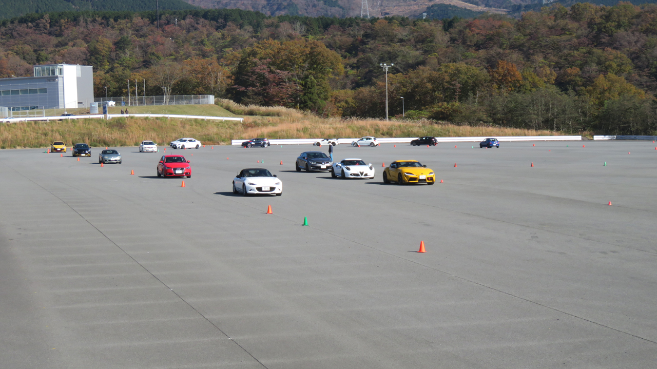 座学が終わると最初にイーブンスロットルでコーナリングするクルマを観察してもらう