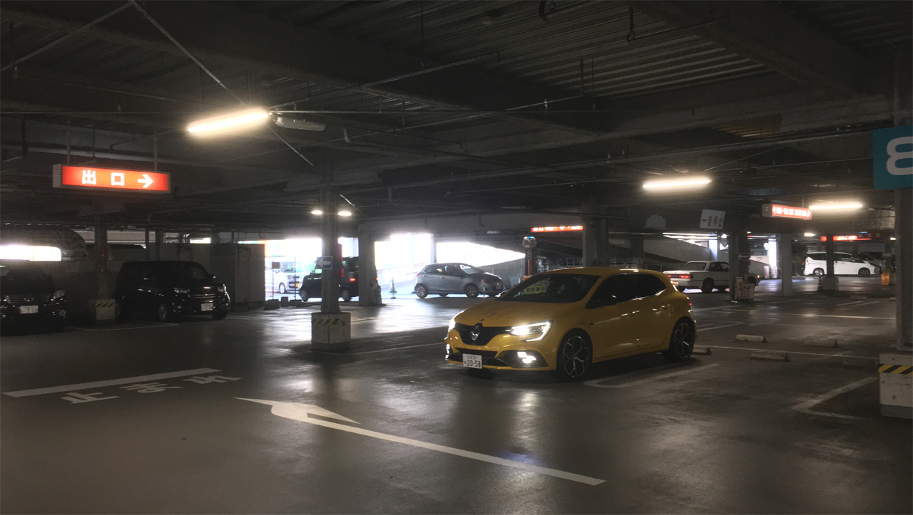 坂を上って左折しもう一度左折しながら場内に入る。 『 ンッ! 』 地元での足に使っているフィットRSで来た時はベタベタにスピードを落とさない限り、手前からステアリングをチビチビ回しても摩擦係数の高い駐車場の路面では、かすかなスキール音をも回避することはできなかったのに 無音 。