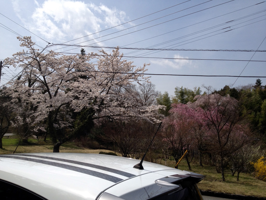 桜の木の下で。この時ばかりは白いトゥィンゴ ゴルディーニ ルノー・スポールで良かったなと。
