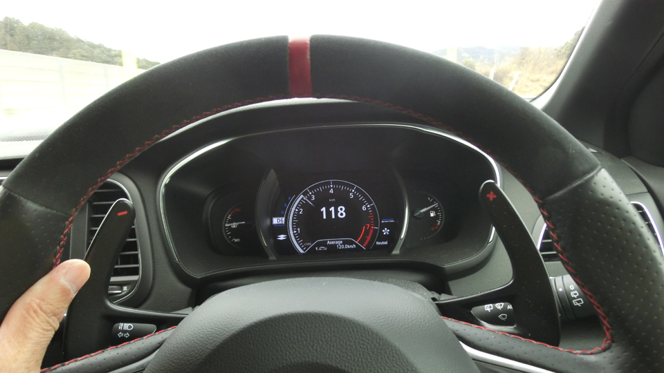 空気抵抗はCD値X前面投影面積X速度の二乗で求められると言うけどCD値は乗用車なら0.3ぐらいだろうし、メガーヌRSとルーテシアⅢRSの全幅X全高を比べても4%ぐらいの差しかないし、結局は上昇した速度が走行抵抗に大きく影響しているのではないか。むろん高出力なのに前面投影面積が小さいクルマや空気抵抗係数が極端に小さいクルマには当てはまらないと思うけど、一般的なクルマだとこのあたりで速度の二乗に比例し加速度的に大きくなる空気抵抗に抗うため、エンジンが我々が思っている以上に頑張り始め、その結果予想以上に燃費が低下したのではないかと想像したわけだ