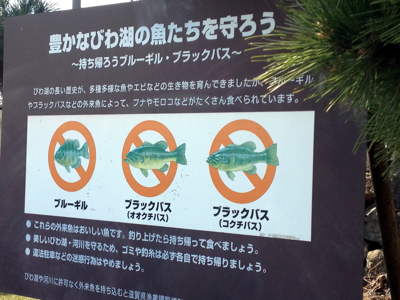 そのためばかりではないらしいが、滋賀県では琵琶湖総合保全整備計画(マザーレイク21計画)を策定し現在は2期目に入っている。条例で外来魚の放流はもちろん、琵琶湖で吊り上げた外来魚の再放流も禁止している。
