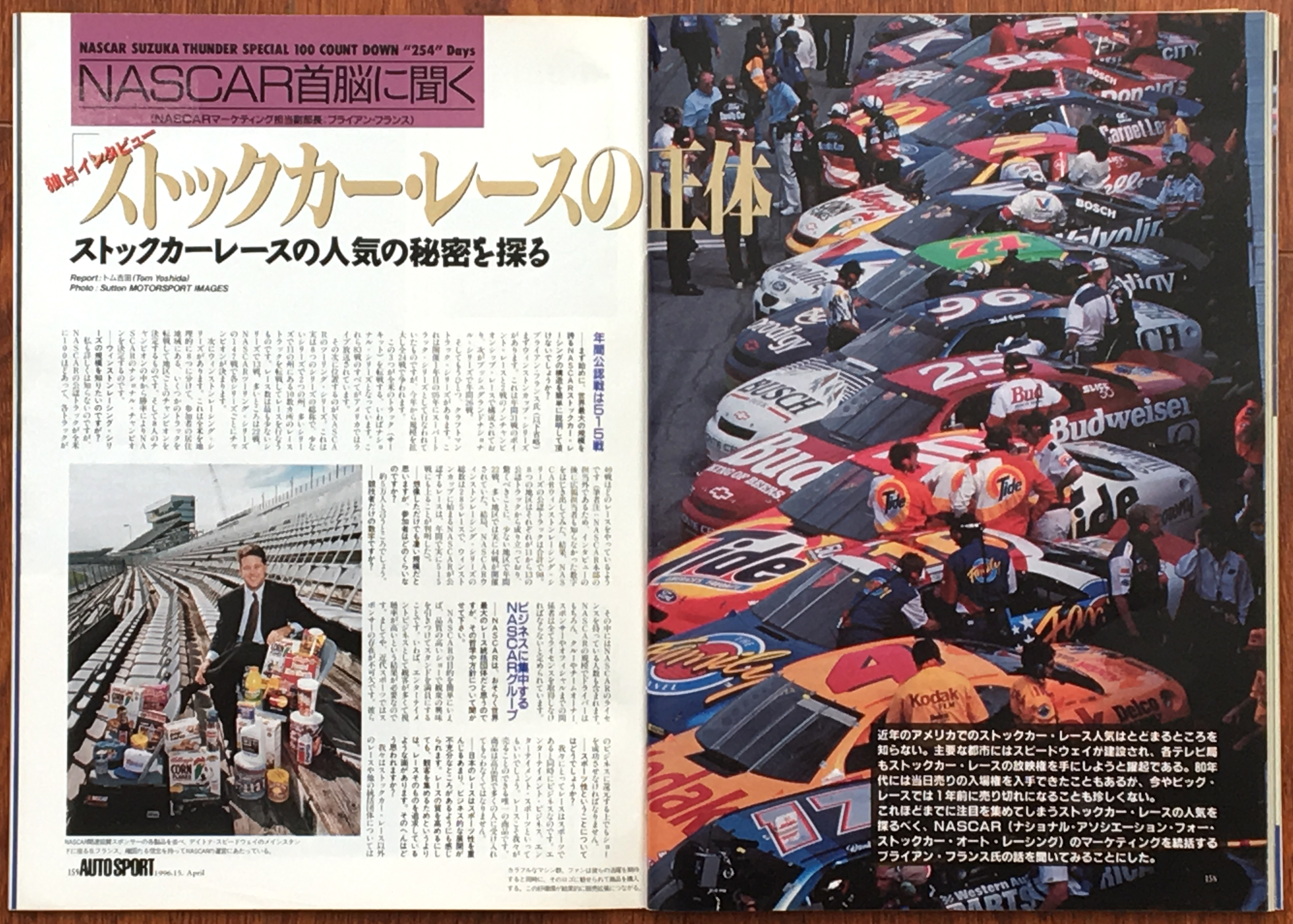 話は飛ぶけれど、1996年のデイトナ500マイルレースの時にインタビューした当時NASCARマーケティングディレクターのブライアン・フランス元NASCAR CEO兼会長にインタビューした時の話が忘れられない。