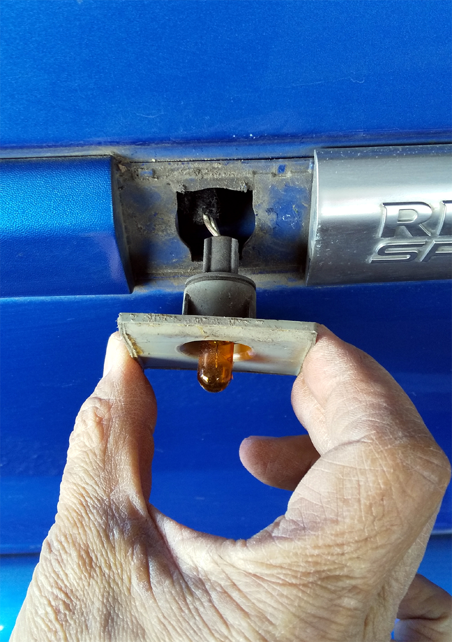 KのルーテシアⅢRSの左側サイドマーカーランプは電球が露出していた