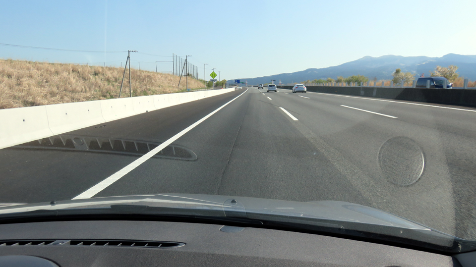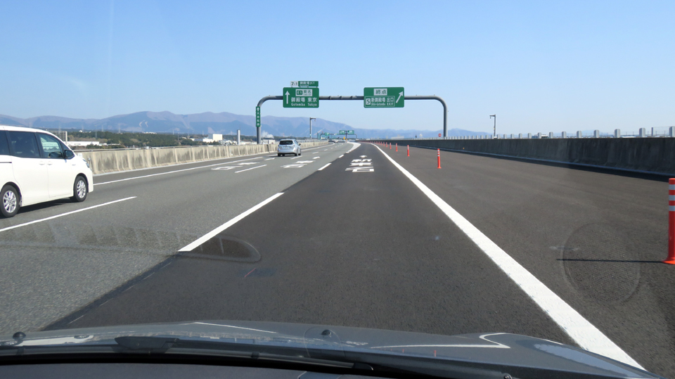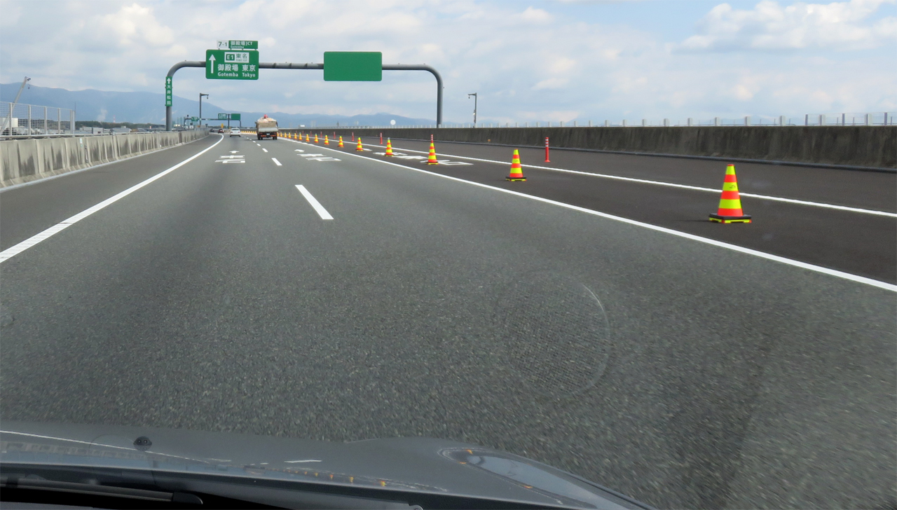 御殿場ジャンクションに近づくと3車線の左レーンが消滅し2車線に