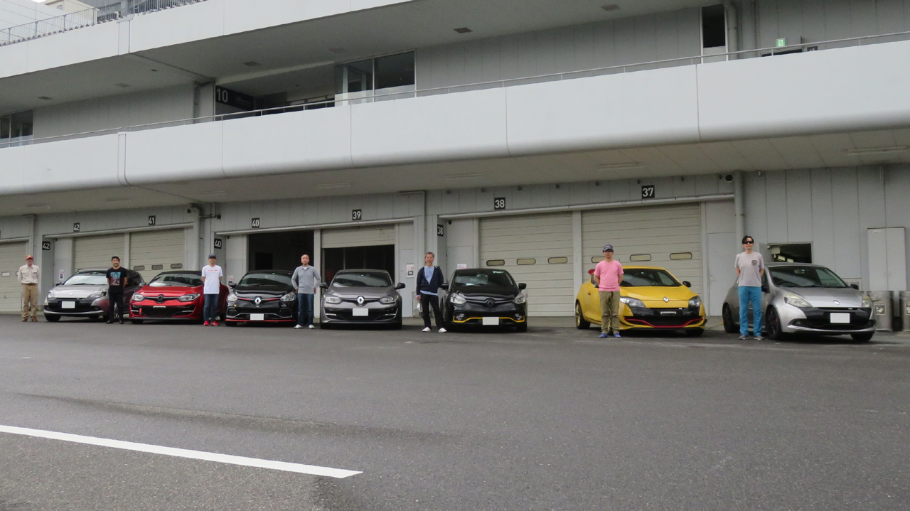 今回雨の鈴鹿サーキットレーシングコースを走ったルノー仲間 右から順に、Yさん、Hさん、Kさん、Sさん、Oさん、Oさん みなさん雨の中お疲れさまでした 雨の日も得るものがありましたよね またお会いしましょう