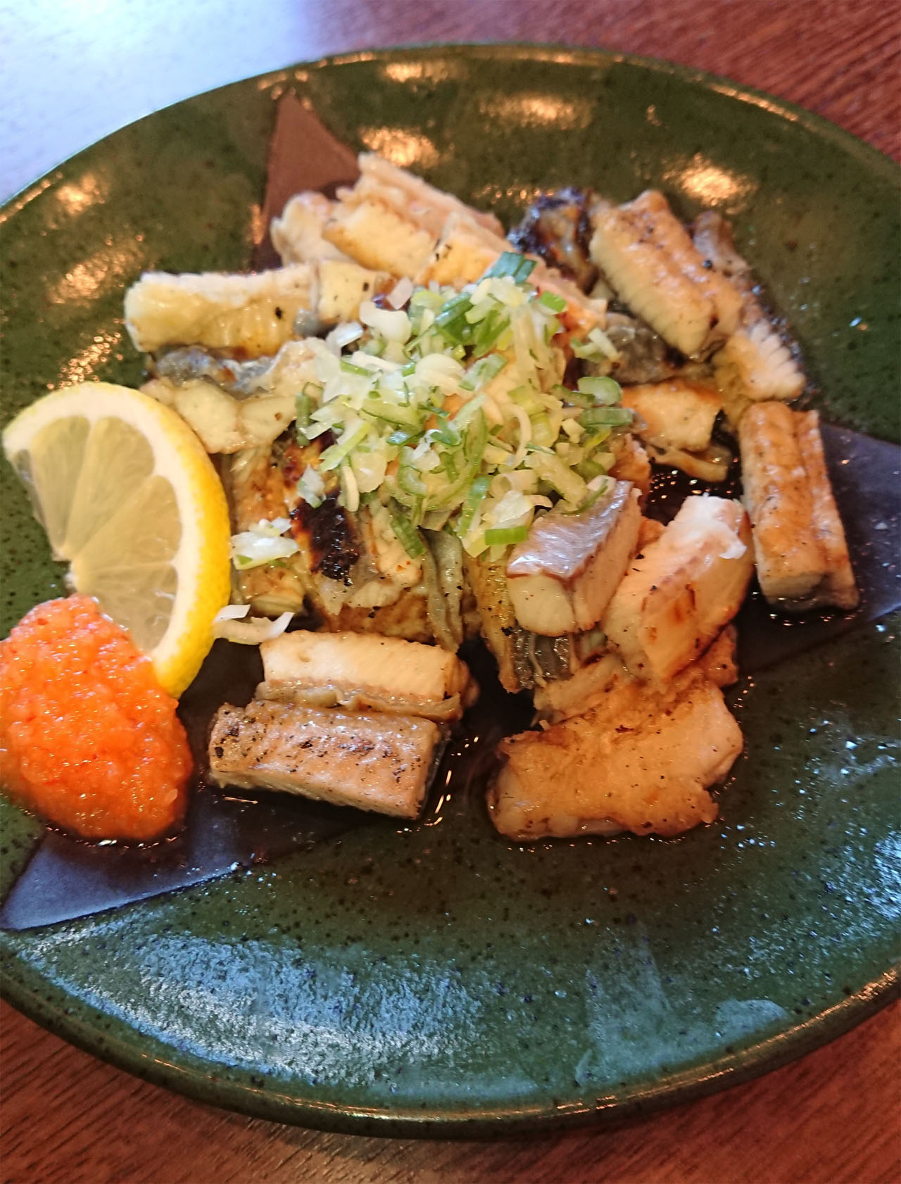 薄味のポン酢であえた白焼きをもみじおろしでいただきます