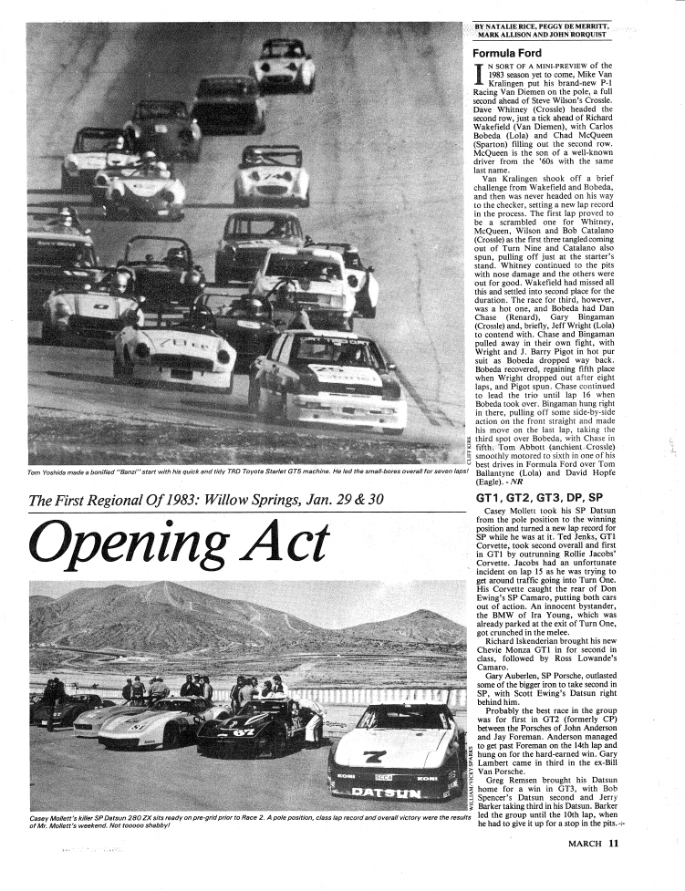 ランオフに招待されるには南太平洋デビジョンシリーズで上位にランクされる必要があったから、年間3レースまで参加が許されるよそのリージョンのナショナルレースにも参加した。今はネーミングライツで呼ばれているサンフランシスコリージョンのシアーズポイントやコークスクリューで有名なラグナセカ。アリゾナリージョンに属しNASCARストックカーレースが行なわれる1周1マイルのトライオーバルとインフィールドを組み合わせたフェニックスや、砂漠の真ん中で砂だらけのラスベガスにも行った。ランオフではロードアトランタも走ったから、いろいろなコースを体験した。