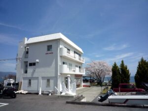 今回のルノー・スポールゼミの会場。琵琶湖畔にたたずむカフェ・スマイル。