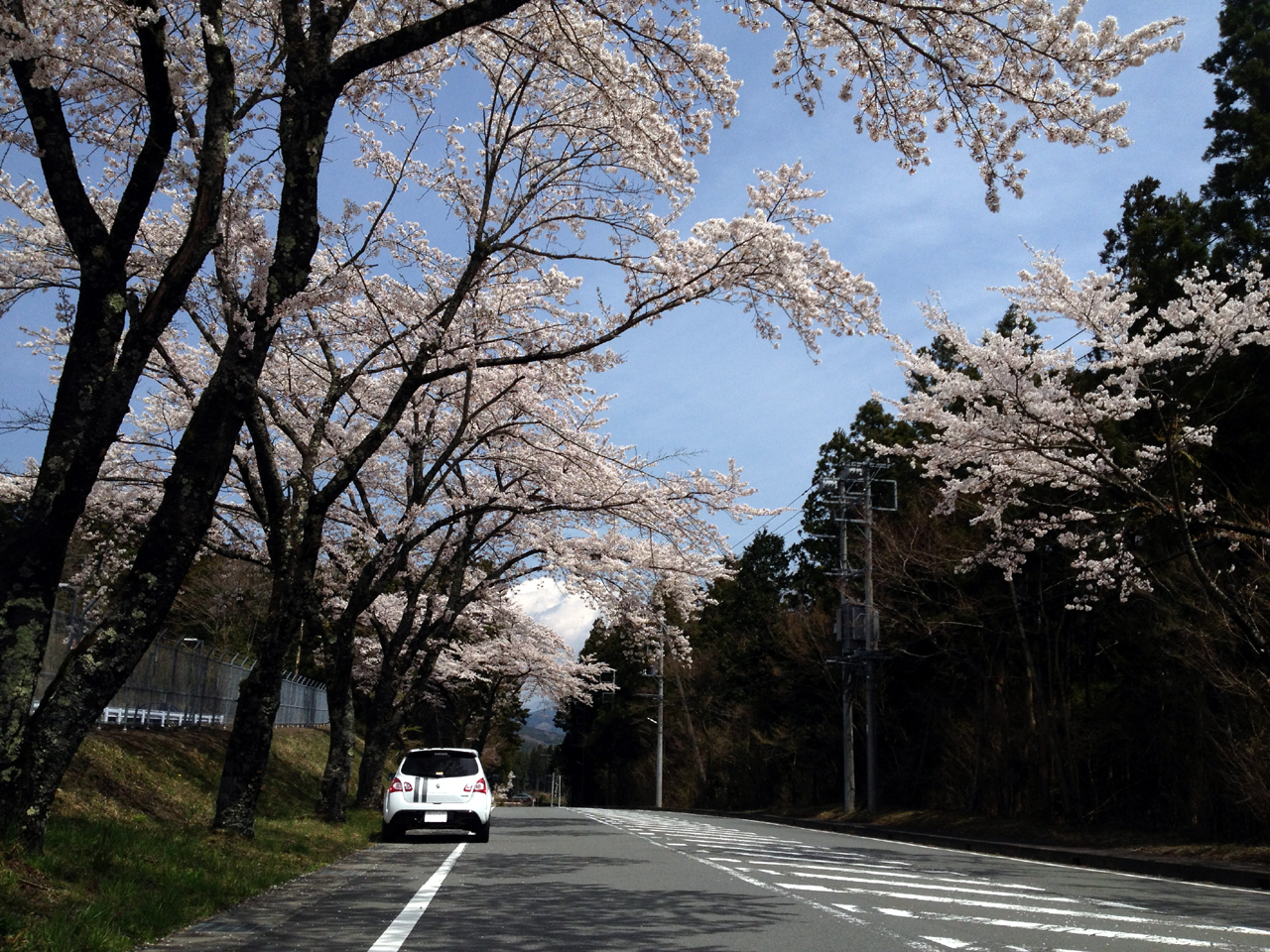毎年出迎えてくれる富士スピードウエイ近くの枝垂桜を背景にとか