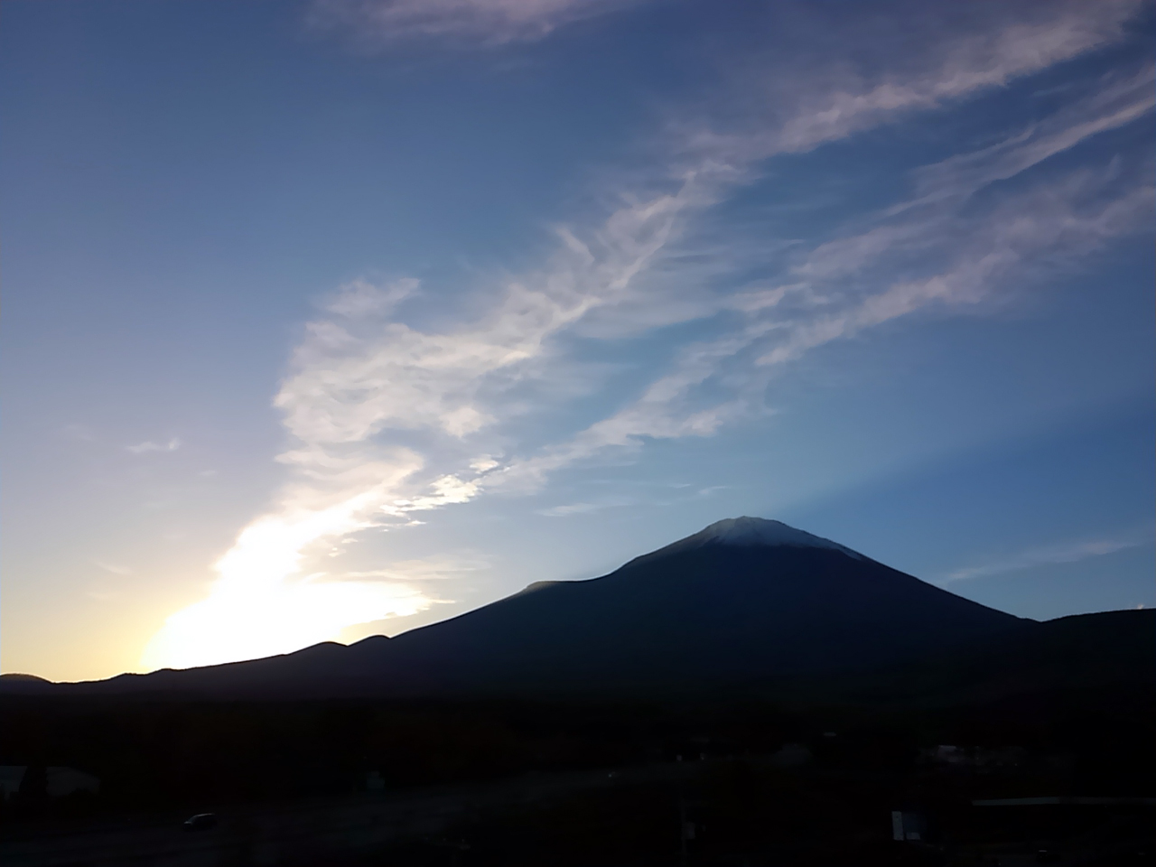 ドライビングスクールの片付けが終わり見上げれば富士山の陰がたなびいていたり
