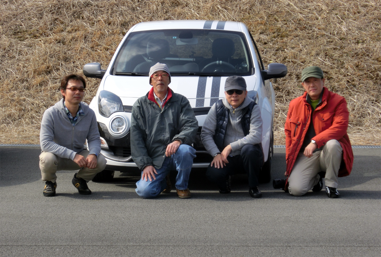 増え始めたルノー・スポールユーザーのWさん、Nさん、Hさん(右から)とトゥィンゴの前でポーズしたり