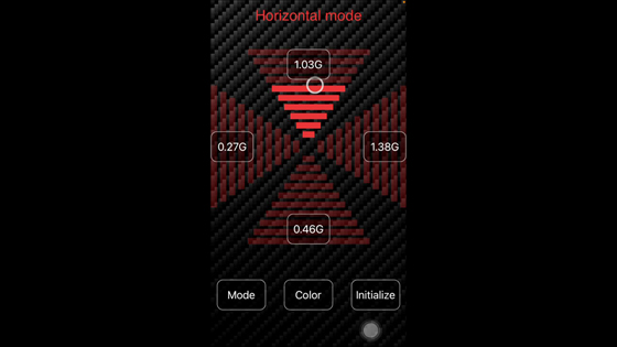 次のふたつの動画は加速から減速、ターンインからコーナリングに移る加速度の変化をGセンサーで可視化したものだ。
