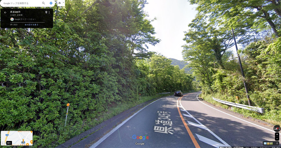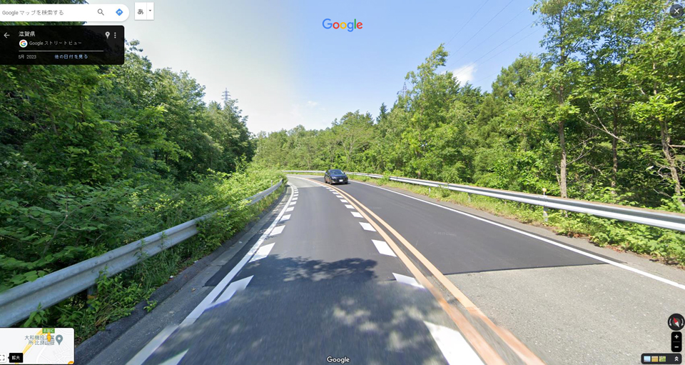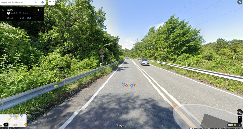 湖西道路の手前の側道を左折すれば京都方面。湖西道路をくぐってから右折し側道に入れば敦賀方面に向かう志賀IC。今回は志賀IC直前にあるブラインドの左コーナーがテーマ。コーナーを抜ける時にどうすればクルマの性能を生かしながら敦賀方面に右折できるかというお話。ボク自身はこの道を通るたびにこのコーナーを大いに楽しんでいる。