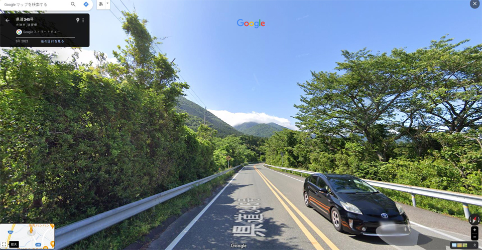 JR湖西線志賀駅から湖西道路志賀ICをつなぐ道路がある。志賀駅は湖面とほぼ同じ高さだけど志賀ICは比良岳の山麓のかなり高い位置にあるから、志賀ICまではけっこうな登り区間になる。