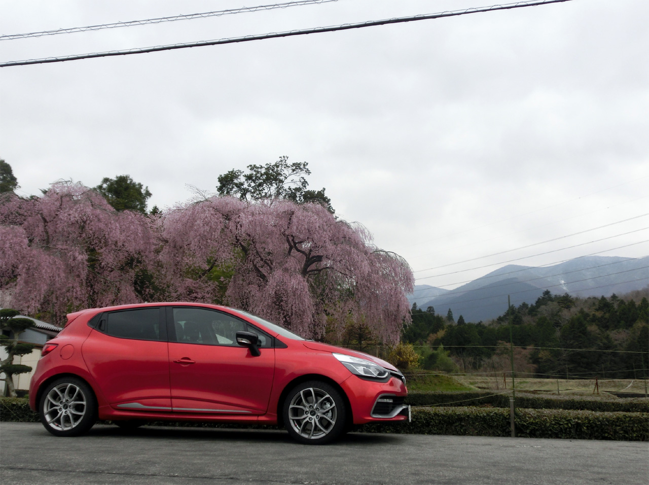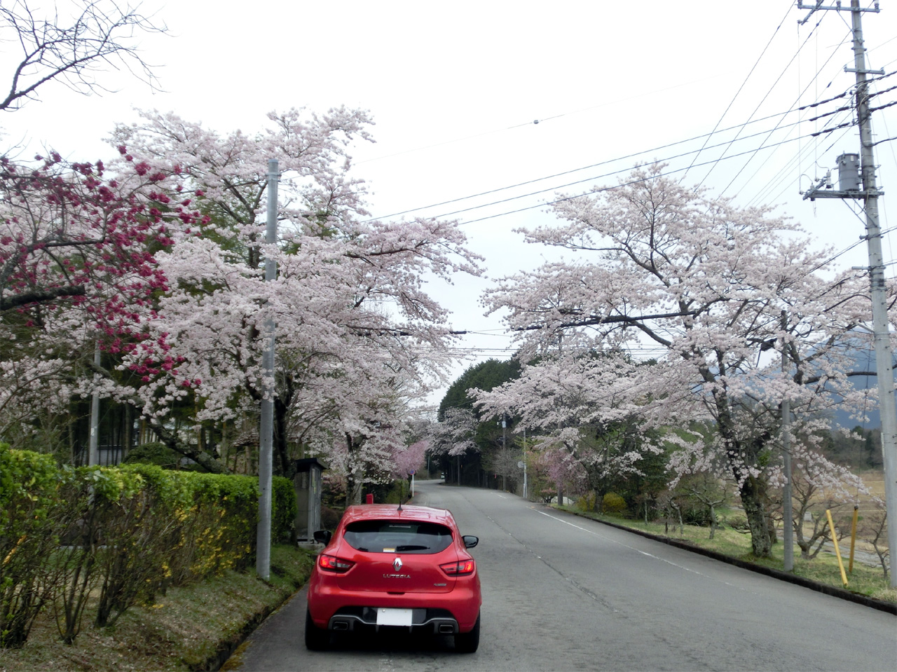 今年は天気がすぐれない日が多い。湖西の桜も遅めの開花。いつもの場所の桜が満開になるのを待ってパチリ。