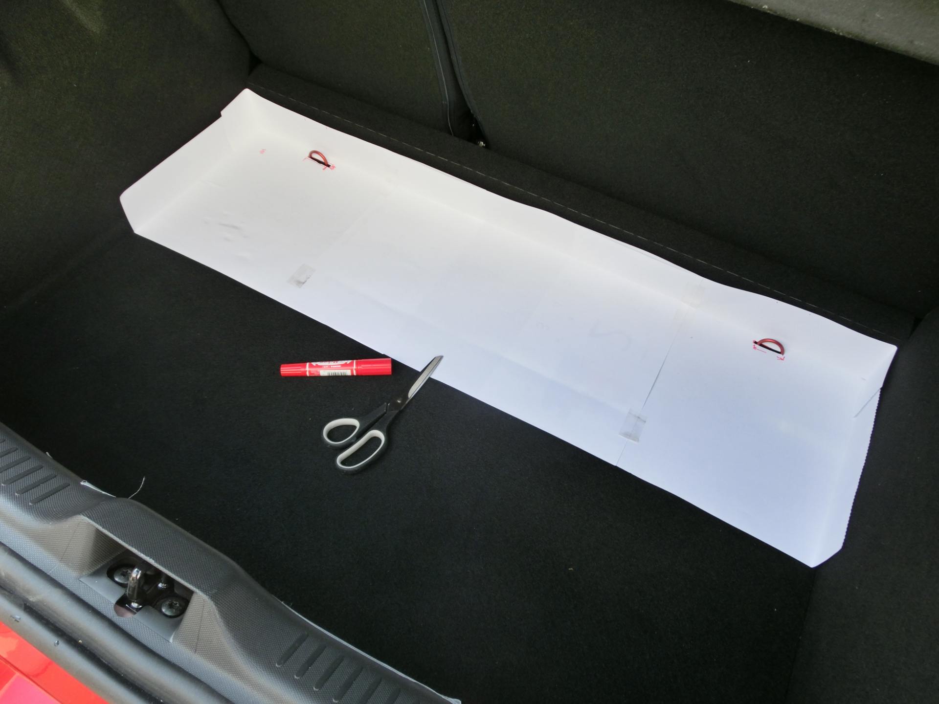 YRSルーテシアRSはスクールのデモカー、リードカーとして活躍しているけど、機材の運搬も大事な役目。で、そろそろ梅雨だし、雨の日なんかに濡れた物を積む必要ができた場合に備えて、フィットのオプション品を参考にラッゲジトレイを作ってみた。