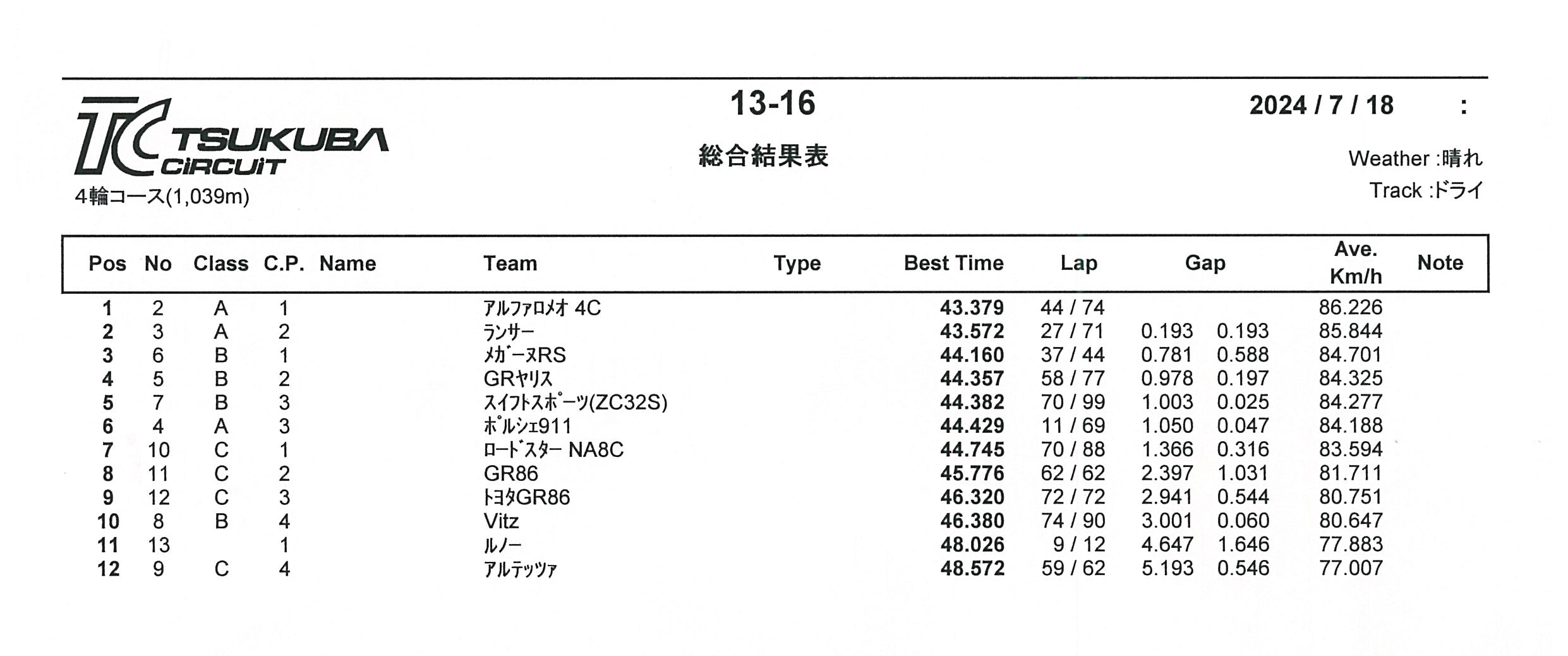 筑波サーキットコース1000