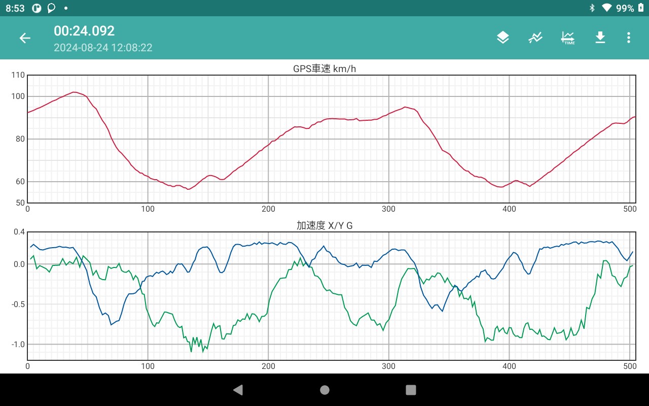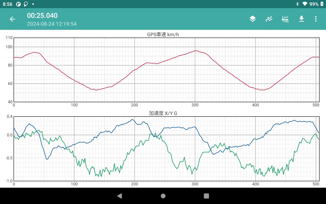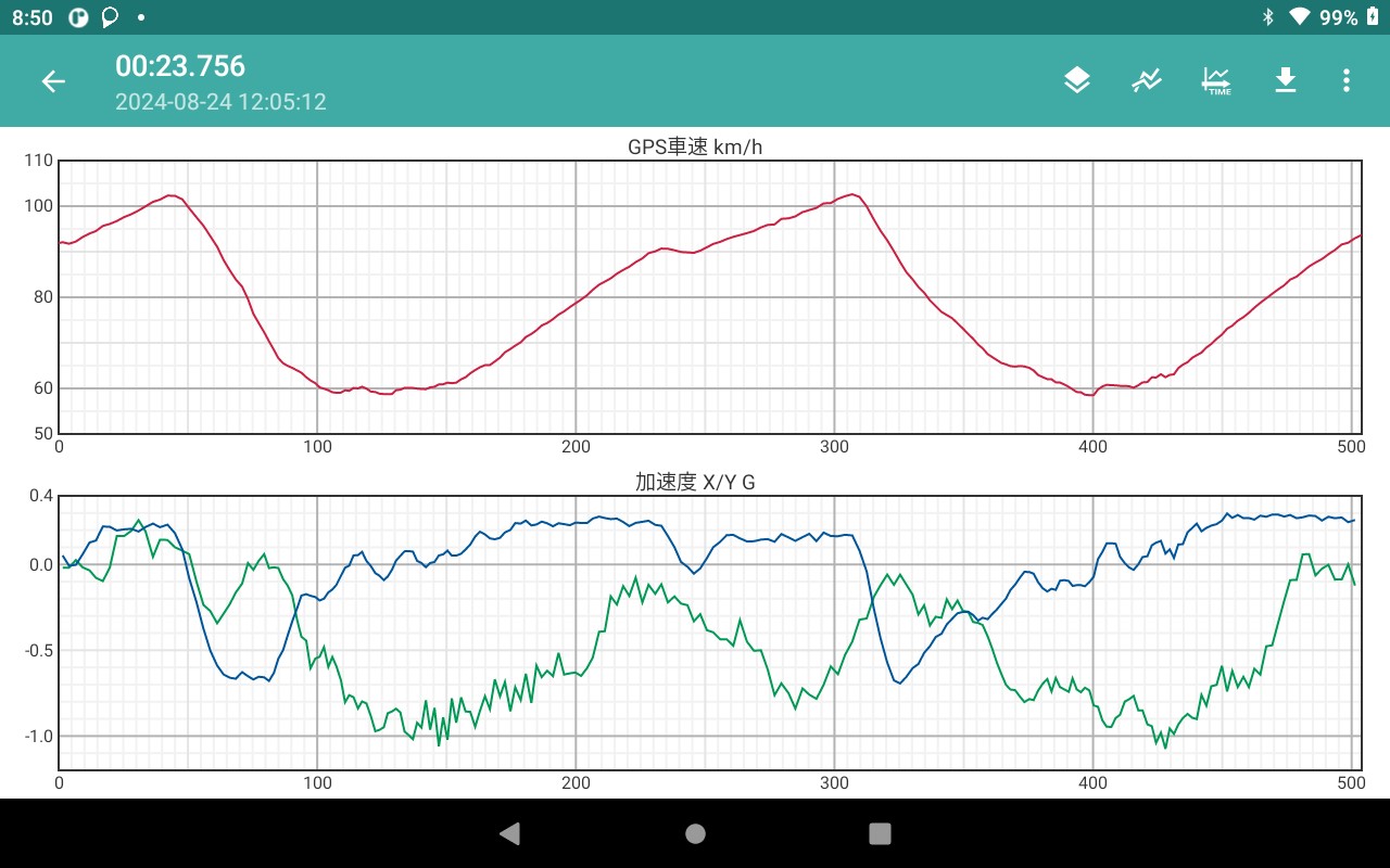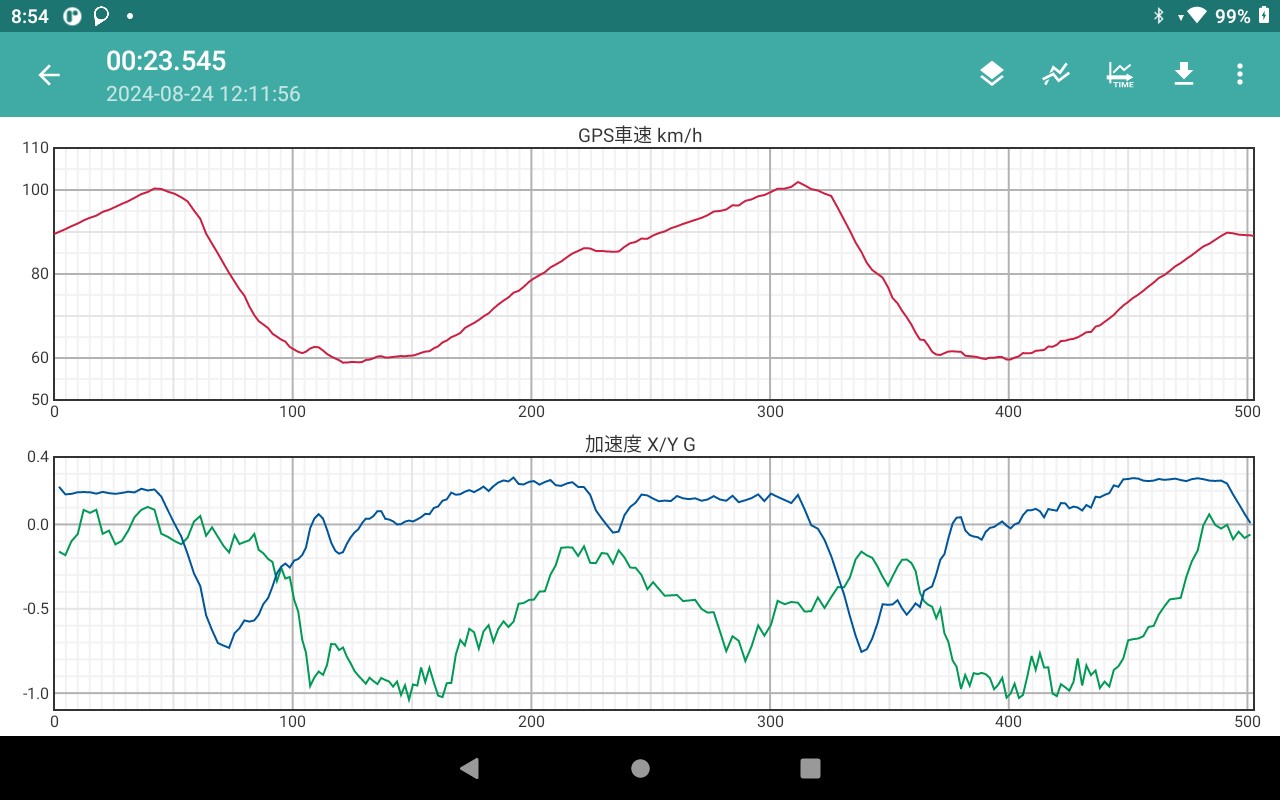 冗談はさておき、それぞれのルーテシアⅢRSがどのような加速減速旋回を繰り返しているか、グラフから読み取ることができる。加速度の増減の度合や方向に目をやればどういう操作をしたかも推察できる。他人の走り方との比較もできるけど、理論的な走りとの整合性も確認できるのが一番。アンドロイド端末さえあれば、世界中のサーキットとユイレーシングスクールの駐車場コースの走行データが取れるのだからGPSLapsはたいしたものだ。(GPSレシーバーがあったほうがより正確なデータを取ることができる)。