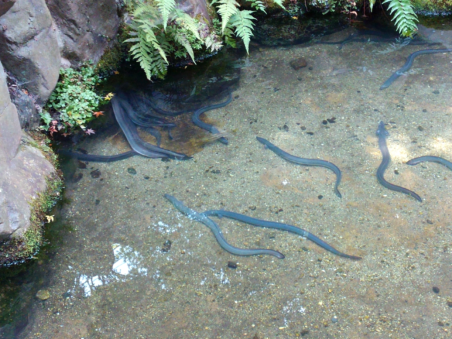 庭にの池で鰻が泳いでいたけど日影がたまり場になっていた