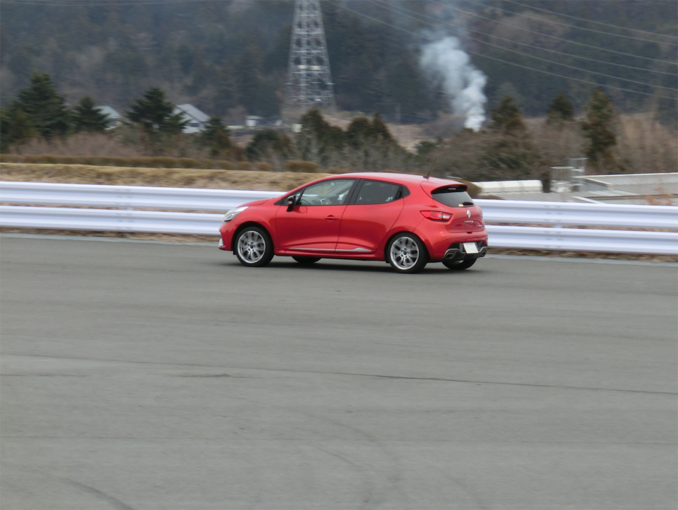 同乗走行でルーテシアGTを運転させてもらったけど、ルーテシアRSより大人ひとり分軽いルーテシアGTが思いの他俊敏であることに驚いた。フロントの軽さが効いているのだろう、ターンイン後の加重移動が穏やかだった。もう少し速度の出るコーナーがあると楽しそう。