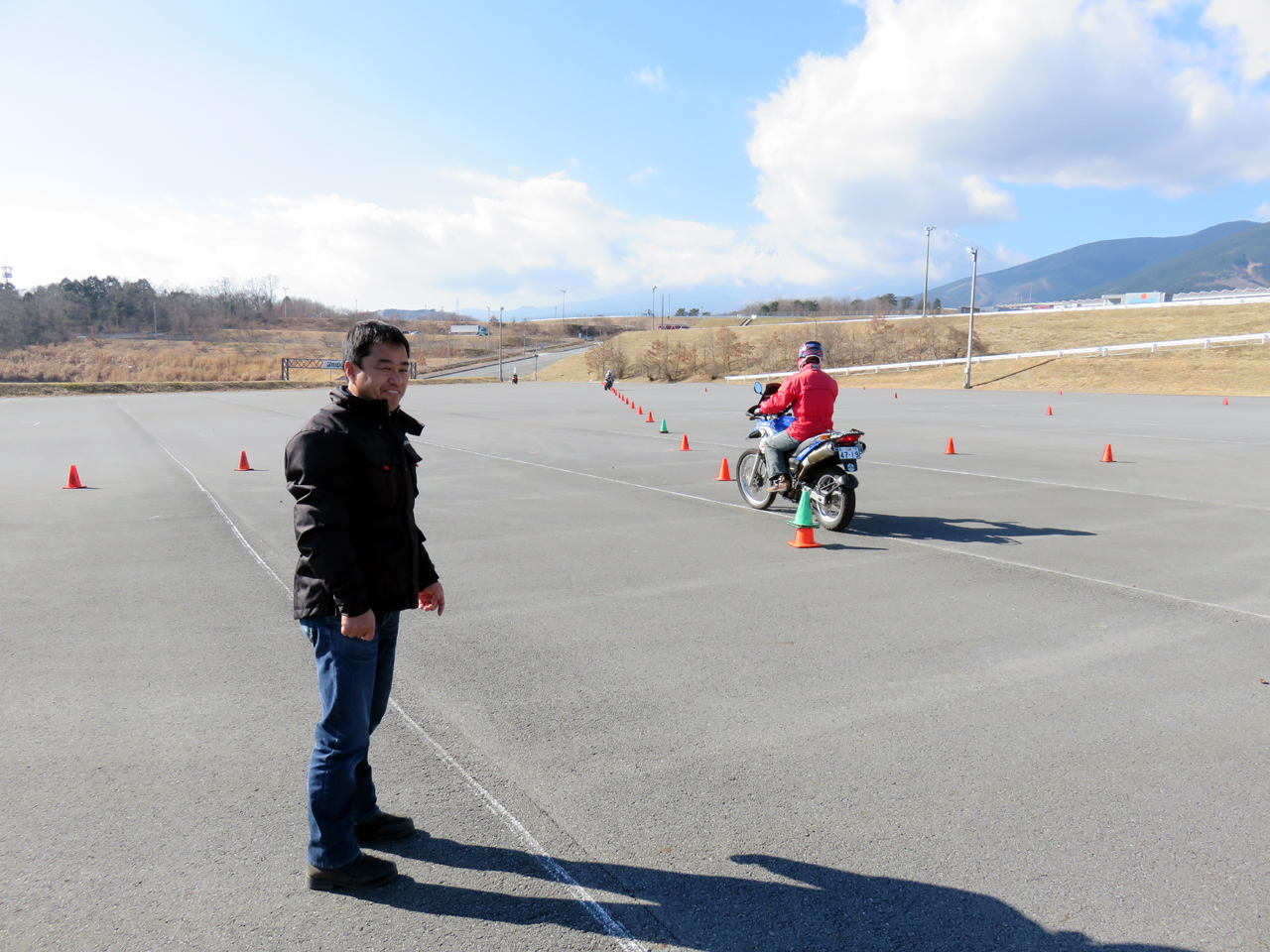 インストラクターはバイクの経験が豊富で理論に基づく操作の重要性を説く田村さんにお願いする