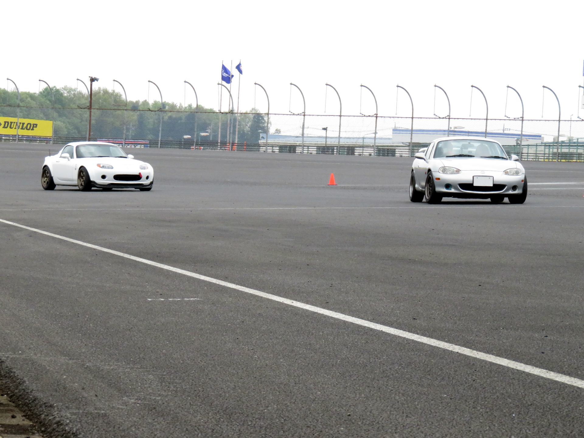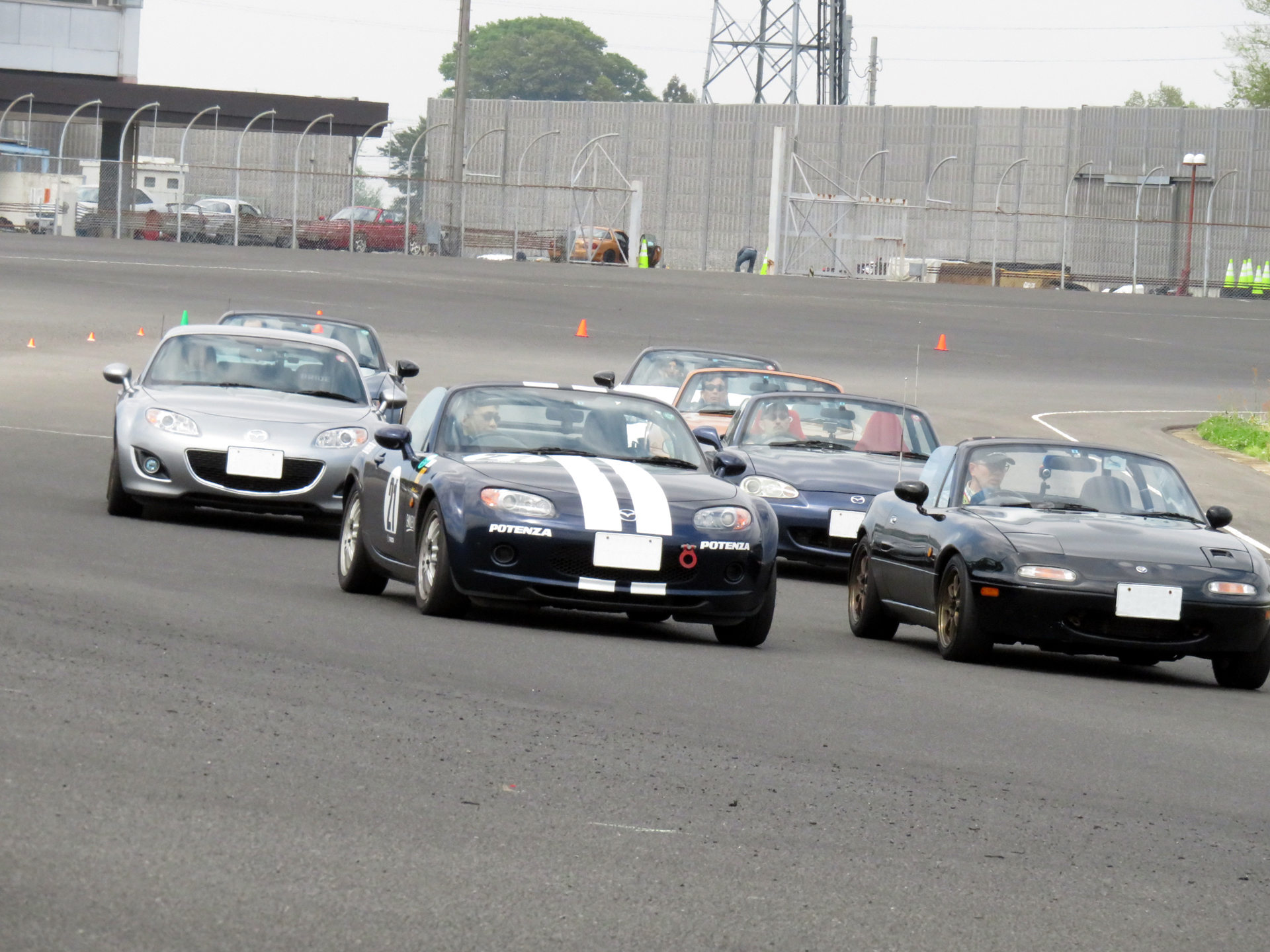 この日。中心線で測って1周541.8mのYRSオーバル筑波を最も速く周回したのはIさんのポルシェ ケイマン4。17.884秒がベストラップだから平均時速109.063キロになる。参加台数が多かったロードスタークラスのベストはNCに乗るOさんの18.677秒で平均時速が104.432キロ。コーナリング速度が高いだけあって、1Gぐらいの横Gが6~7秒続くのは得がたい体験。