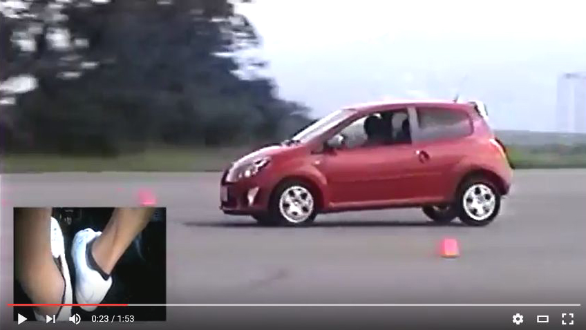 実際の操作を見るすべがないのであくまでも想像ですが、「できるだけ短い距離」でという呪文に惑わされてスロットルペダルからブレーキペダルに一気に足を踏みかえると同時に踏み込んでしまった結果ではないかと。これでは制動距離を縮めることはできません。クルマが減速する理屈が無視されているからです。