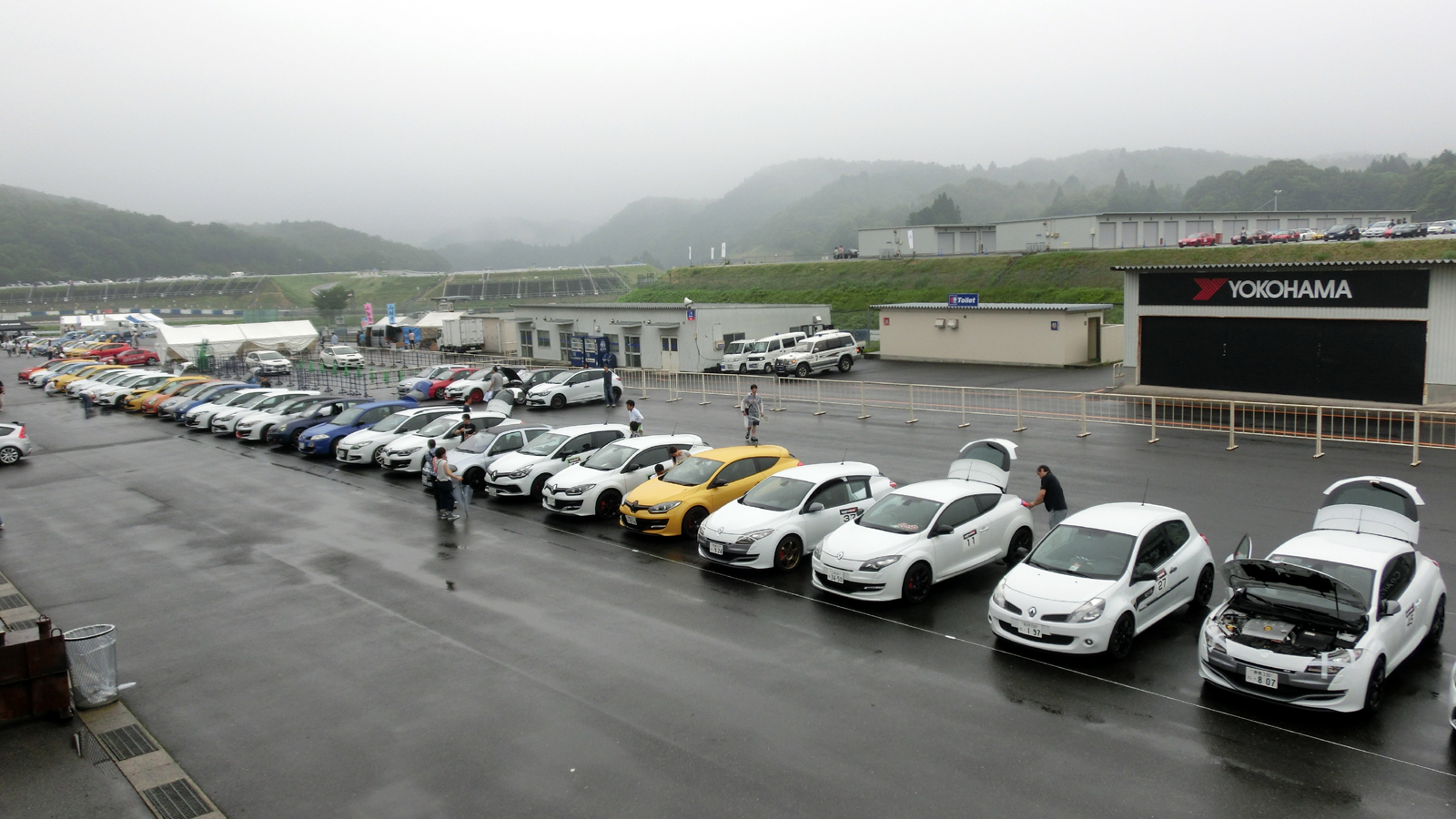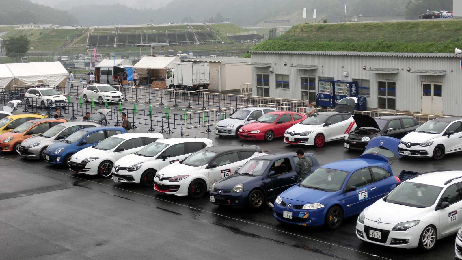 当日。ゲートオープンの5時に合わせるかのように強い雨が降る。それでも続々と集まるルノーユーザー。