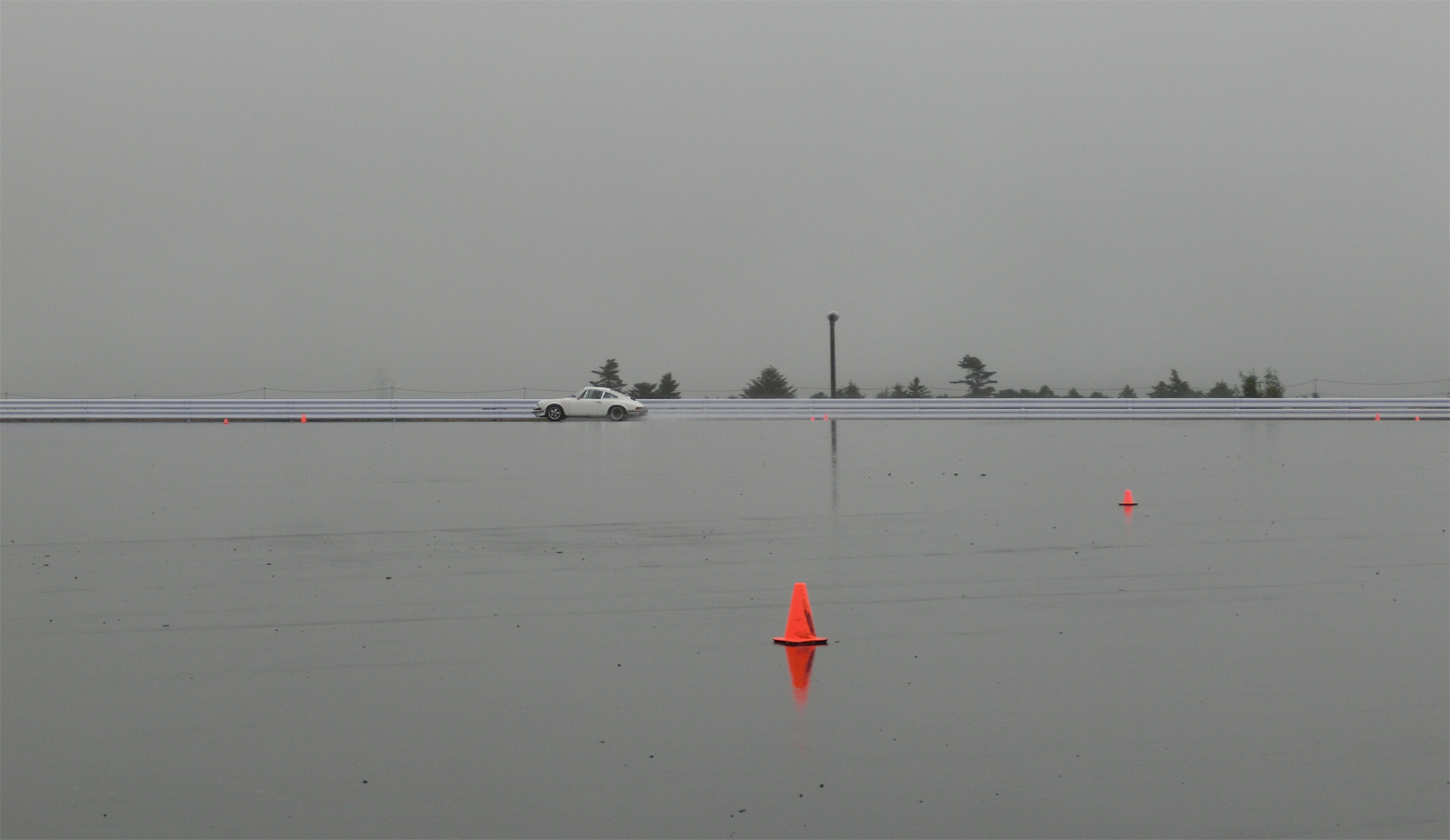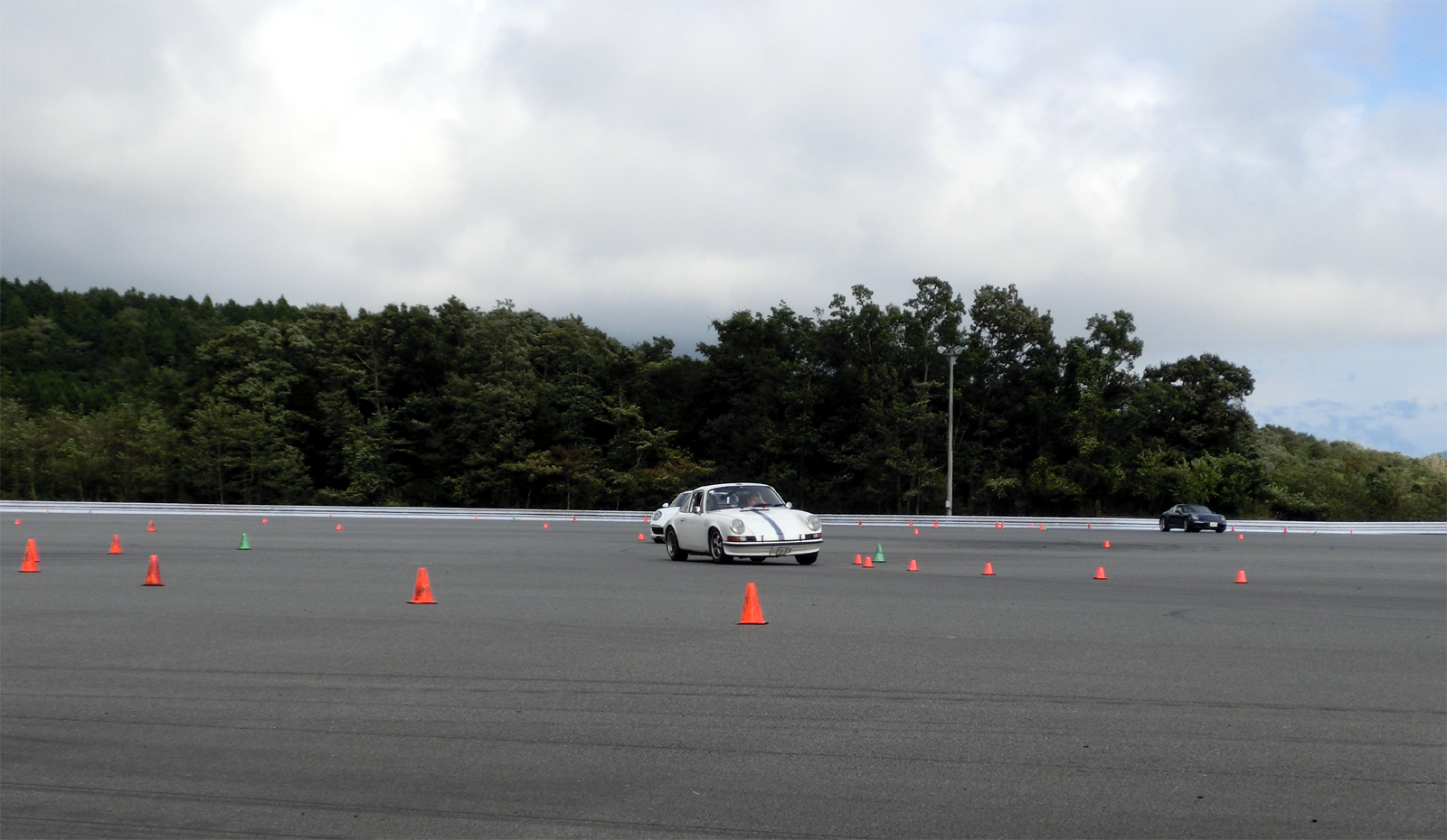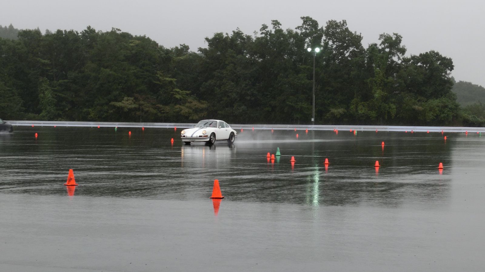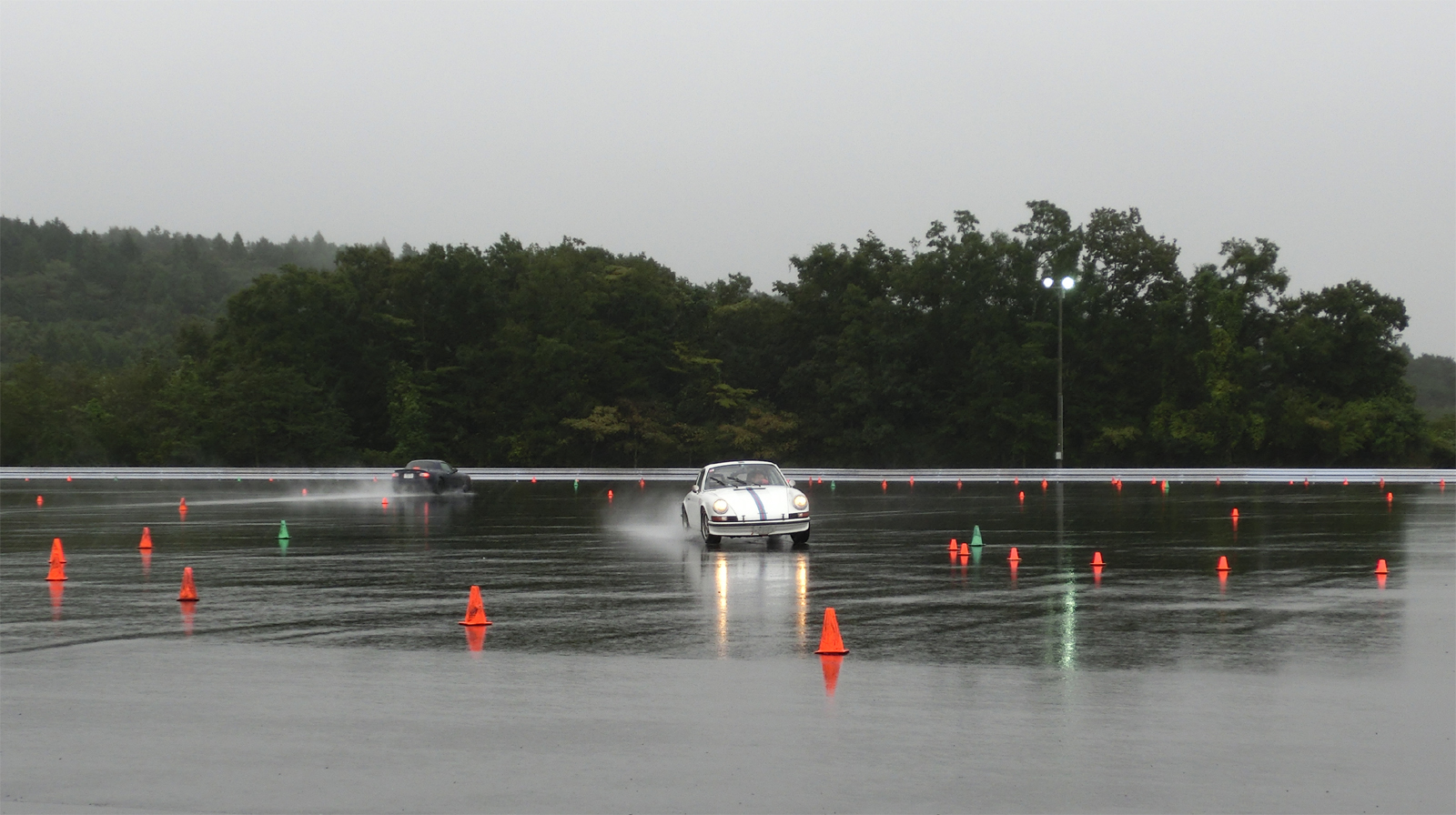 雨が降ると参加者に「今日はラッキーですね」、「今日はお日柄もよく」といつも言うものだから、常連はもちろん初めて受講する人もウエット路面に対する抵抗感は少ない。せっかく練習するのだから、操作が正しいかどうかはっきり結果の出る雨は願ったりかなったりではないか。
