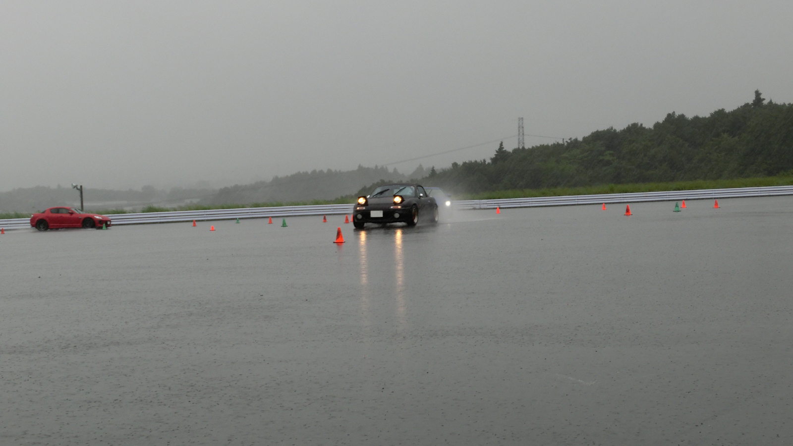 クルマの性能はそれまでと同じなのだけど、タイヤが接している路面のほうの摩擦係数が小さくなるので、タイヤが路面をつかむ力は低くなるし限界を超えた時の挙動も唐突になるのは事実ではある。だけど、短絡的に雨は危ないと決めつけて消極的になり、ウエット路面での操作を積極的に学ぼうとしない人が多いのはドライビングスクール主宰者としては残念だ。